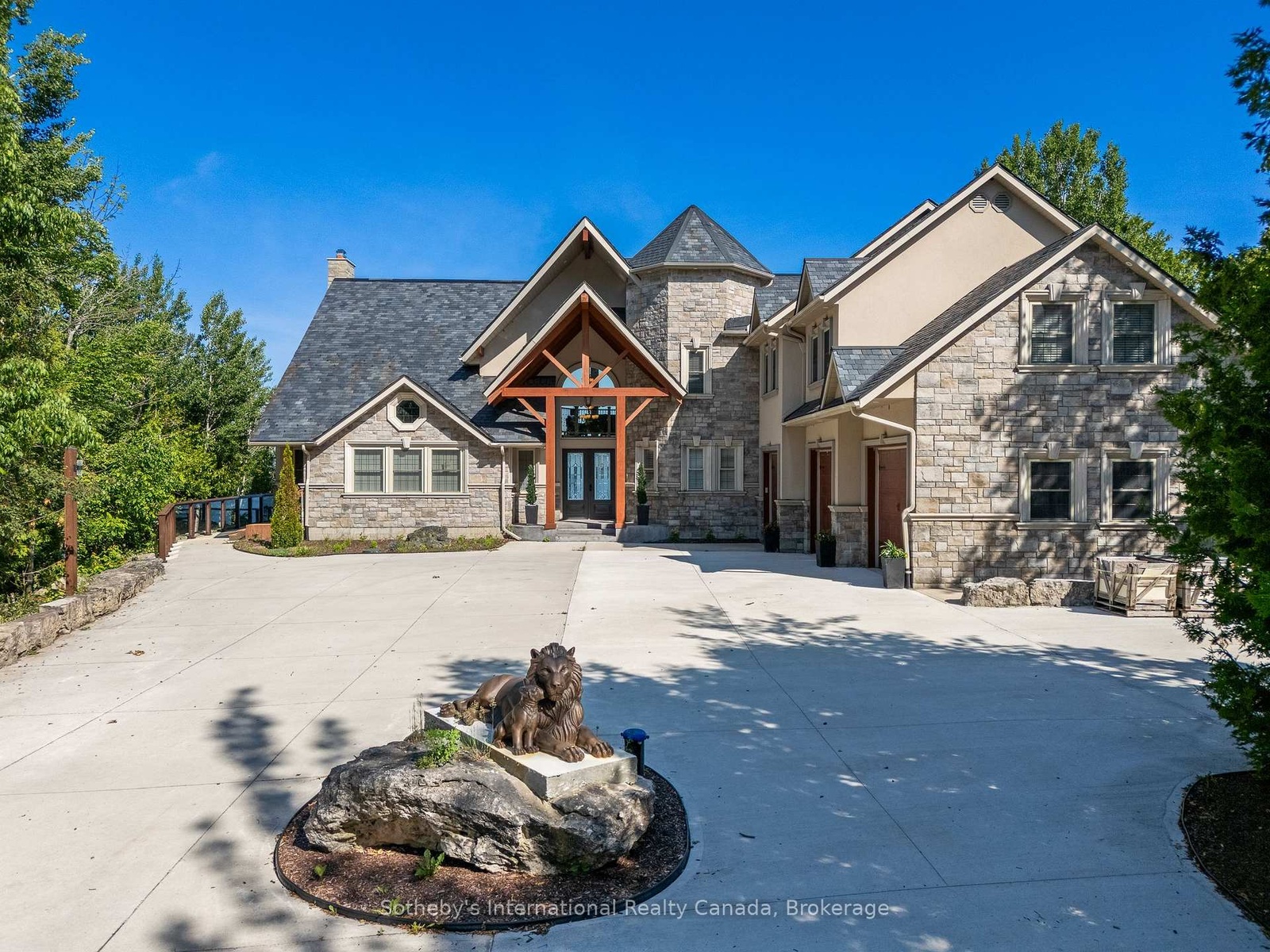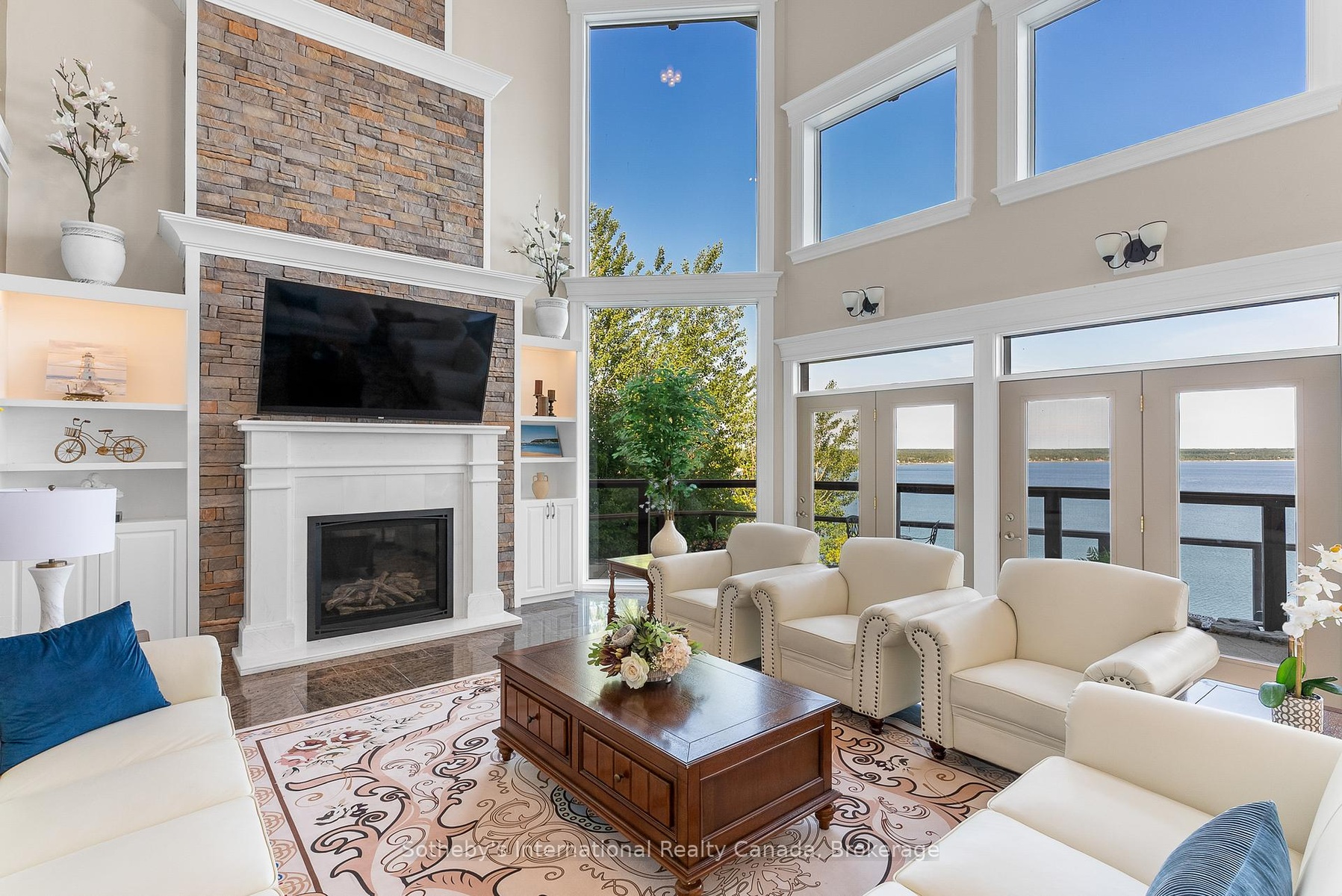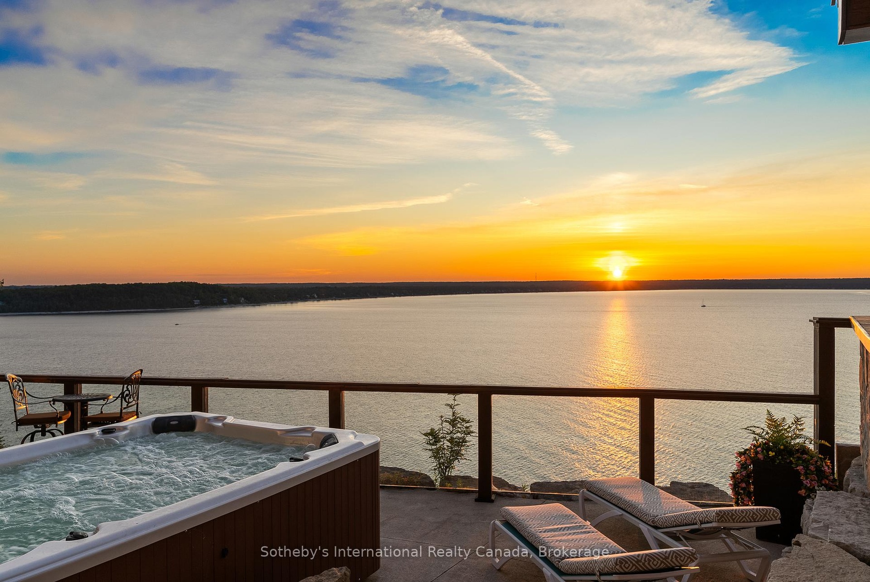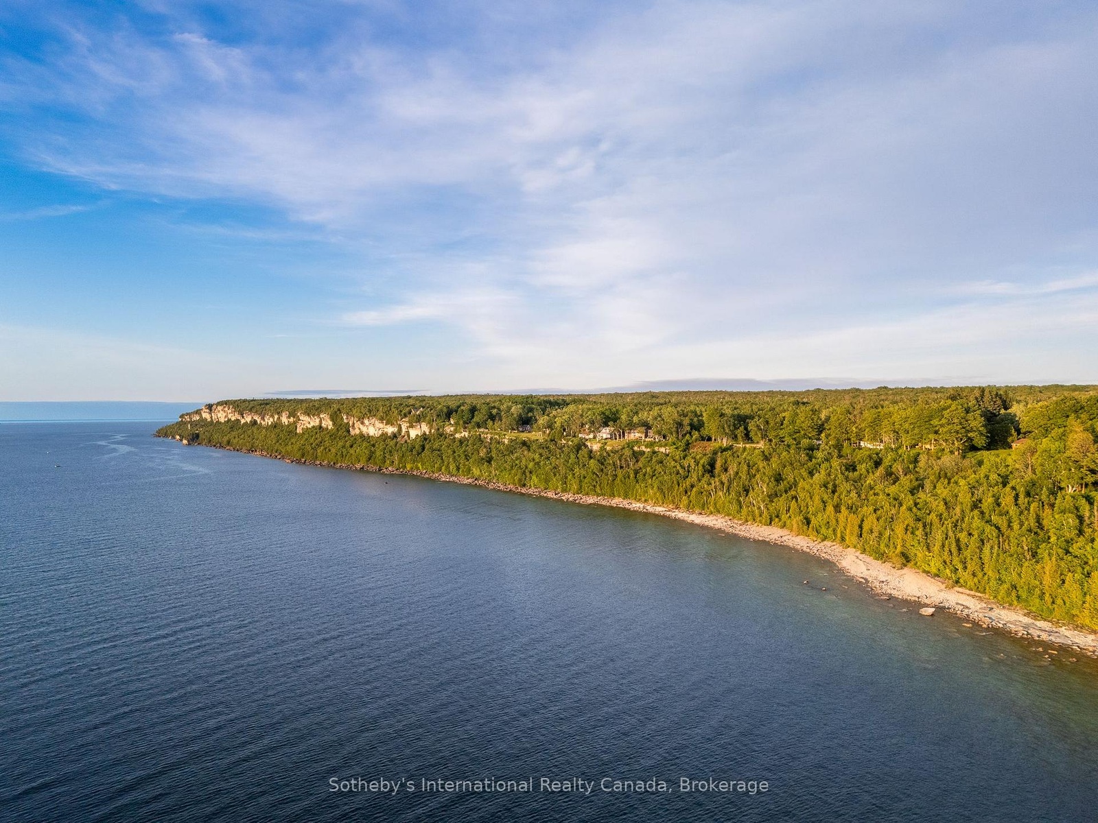 The Peninsula Perch is a 6,418 sq ft cliffside masterpiece perched 300 ft above the turquoise waters of Georgian Bay, offering nearly 4 km of uninterrupted northwest-facing views and world-class sunsets over Whippoorwill Bay. This architectural feat features R45 ICF construction from foundation to trusses, topped with a timeless slate roof and a concrete driveway leading to a triple-car garage with heated floors and EV charger rough-in. Inside, the great room boasts soaring 33-ft ceilings anchored by solid marble pillars and a grand fireplace with a custom marble mantle, while the mezzanine sitting area and primary bedroom balcony offer a front-row seat to the escarpment. The professional chef's kitchen is equipped with a large island induction cooktop with a pop-up air vent, a walk-in pantry, four Sub-Zero fridge/freezer units, two dishwashers, and an ice maker. Designed for comfort and efficiency, the home features radiant heated floors throughout and the convenience of primary bedroom laundry. Complete privacy with an acre to the left of protected association land and 13 acres to the right of Crown land. Street access to the Bruce trail.The outdoor living space is a maintenance-free oasis with a covered porch, large hot tub, and high-end AstroTurf grounds, all situated in a designated Dark Sky community just 30 minutes from the 5,000-ft runway at Wiarton Keppel International Airport.