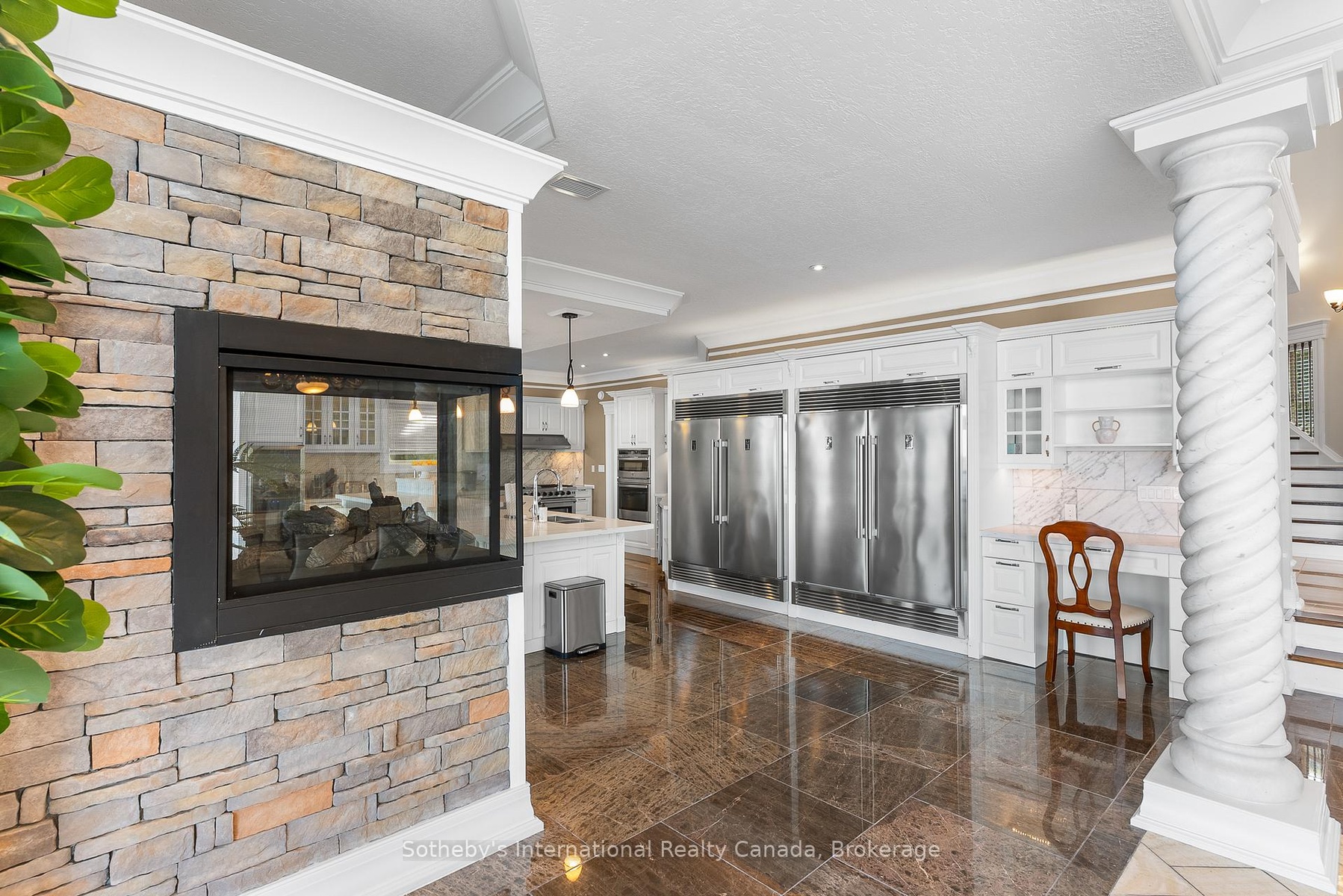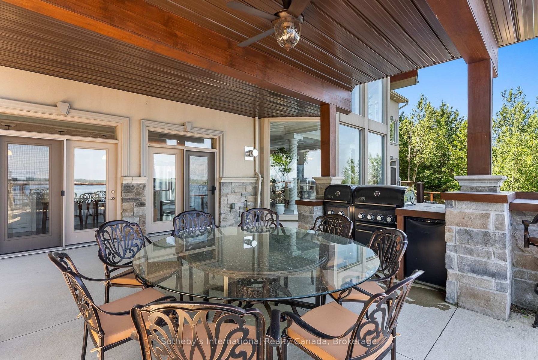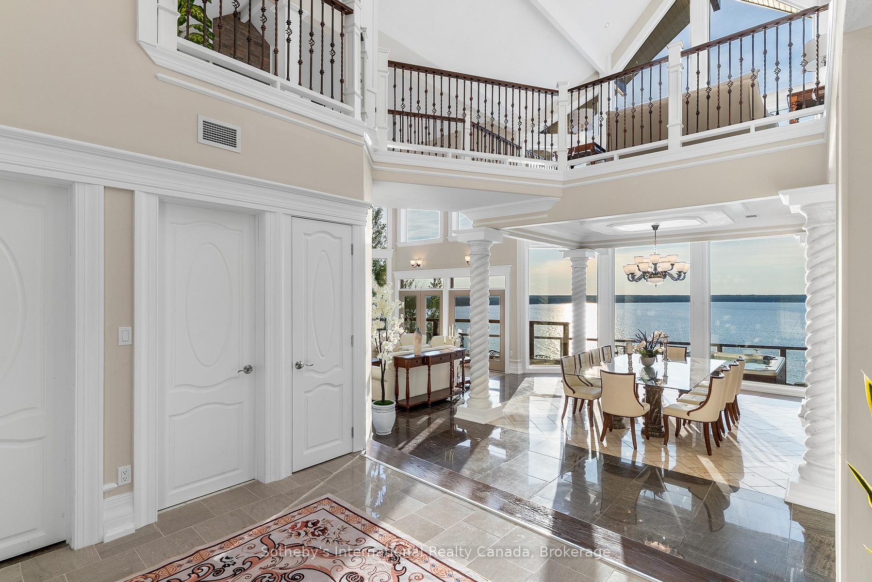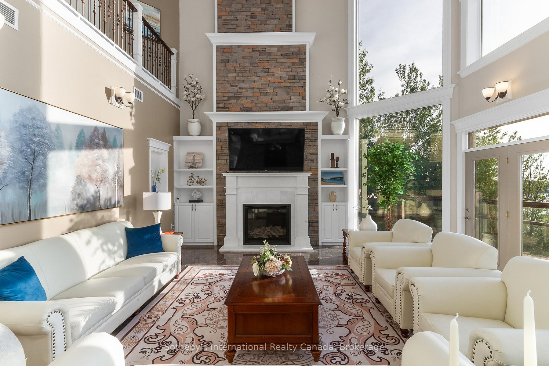 The Peninsula Perch is a 6,418 sq ft cliffside masterpiece perched 300 ft above the turquoise waters of Georgian Bay, offering nearly 4 km of uninterrupted northwest-facing views and world-class sunsets over Whippoorwill Bay. This architectural feat features R45 ICF construction from foundation to trusses, topped with a timeless slate roof and a concrete driveway leading to a triple-car garage with heated floors and EV charger rough-in. Inside, the great room boasts soaring 33-ft ceilings anchored by solid marble pillars and a grand fireplace with a custom marble mantle, while the mezzanine sitting area and primary bedroom balcony offer a front-row seat to the escarpment. The professional chef's kitchen is equipped with a large island induction cooktop with a pop-up air vent, a walk-in pantry, four Sub-Zero fridge/freezer units, two dishwashers, and an ice maker. Designed for comfort and efficiency, the home features radiant heated floors throughout and the convenience of primary bedroom laundry. Complete privacy with an acre to the left of protected association land and 13 acres to the right of Crown land. Street access to the Bruce trail.The outdoor living space is a maintenance-free oasis with a covered porch, large hot tub, and high-end AstroTurf grounds, all situated in a designated Dark Sky community just 30 minutes from the 5,000-ft runway at Wiarton Keppel International Airport.