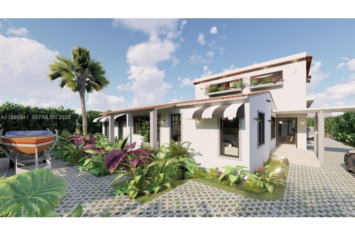 Unique homesite of nearly 8,000sf and a fully remodeled designer's turnkey built residence East of the US-1 & 3 minutes from the beach. The pictures depict the finished home which we project to be completed in the next 6-12 month's. Approx. 2,800sf with 4 bedrooms and 4 full baths, the gated residence showcases soaring 10' ceilings, a flexible room (home theater, office, gaming room, gym, guest suite, etc.) a wet bar, a chef's kitchen, summer kitchen, a secluded 2nd floor main suite, and a separate structure that is ideal for storing a golf cart and other items. - 2 years white glove warranty - Off the FPL grid with $50/month - Solar power & generator - compact delicates washer & dryer in WIC - smart water panel - smart home - 2nd floor main suite kitchenette +