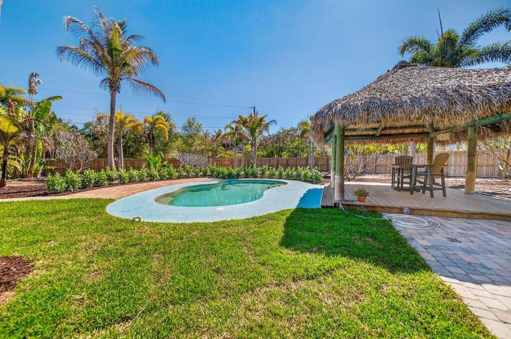 A refined coastal retreat in Stuart's coveted Port Sewall. This single level residence is set on a rare 0.64 acre homesite with no HOA. Thoughtfully renovated, the 3 bedroom, 2.5 bath layout features soaring vaulted ceilings, split floorplan, gourmet kitchen, open layout and full impact windows. The private grounds create a resort style setting with a pool, tiki hut, outdoor shower and lush tropical landscape, along with space for boat or RV storage. Moments from Sandsprit Park and the boat ramp with access to the ocean and surrounded by waterfront estates. A distinctive property defined by scale, upgrades, and a location that continues to impress. These details and more are best experienced in person.