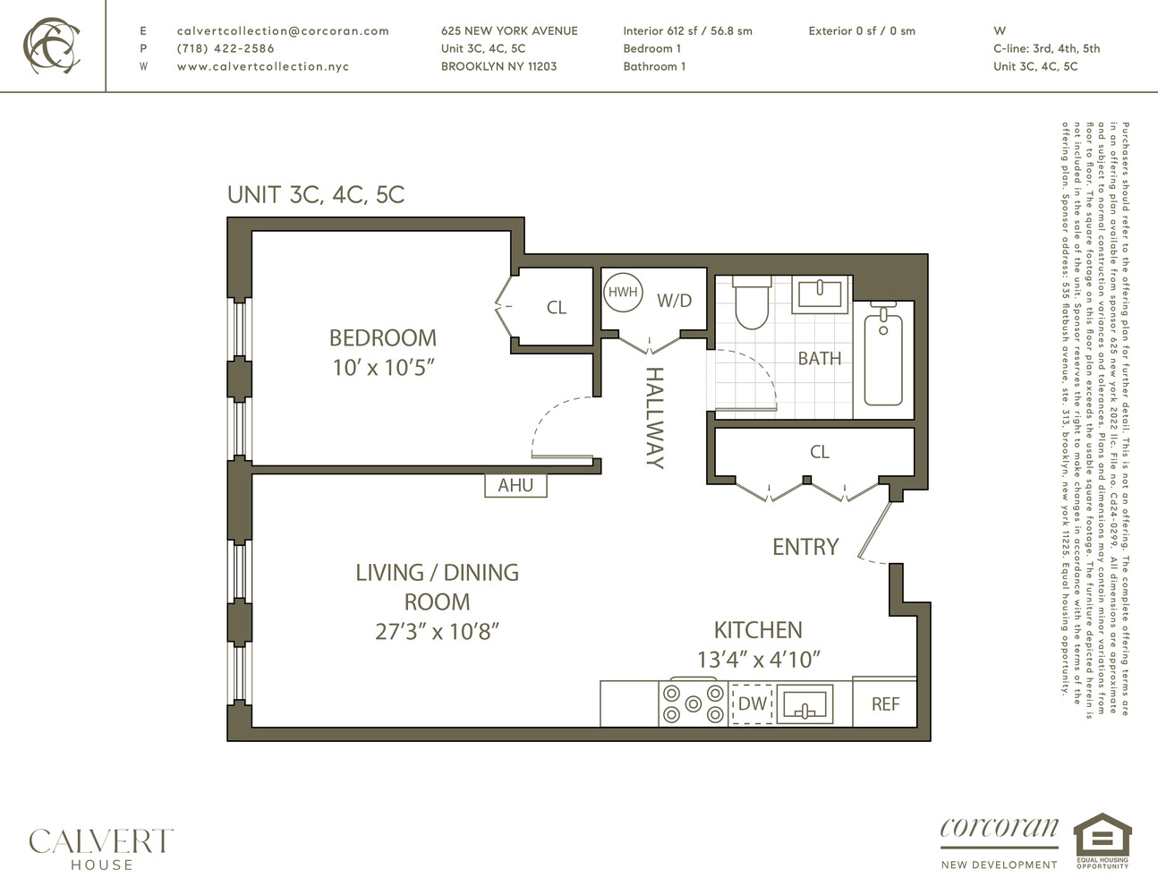 The complete offering terms are in an offering plan available from sponsor 625 New York 2022 LLC: File No. CD24-0299. Sponsor Address: 535 Flatbush Avenue, STE. 313, Brooklyn, New York 11225. The Corcoran Group is a licensed real estate broker. Information contained herein is obtained from sources deemed reliable. Equal Housing Opportunity
