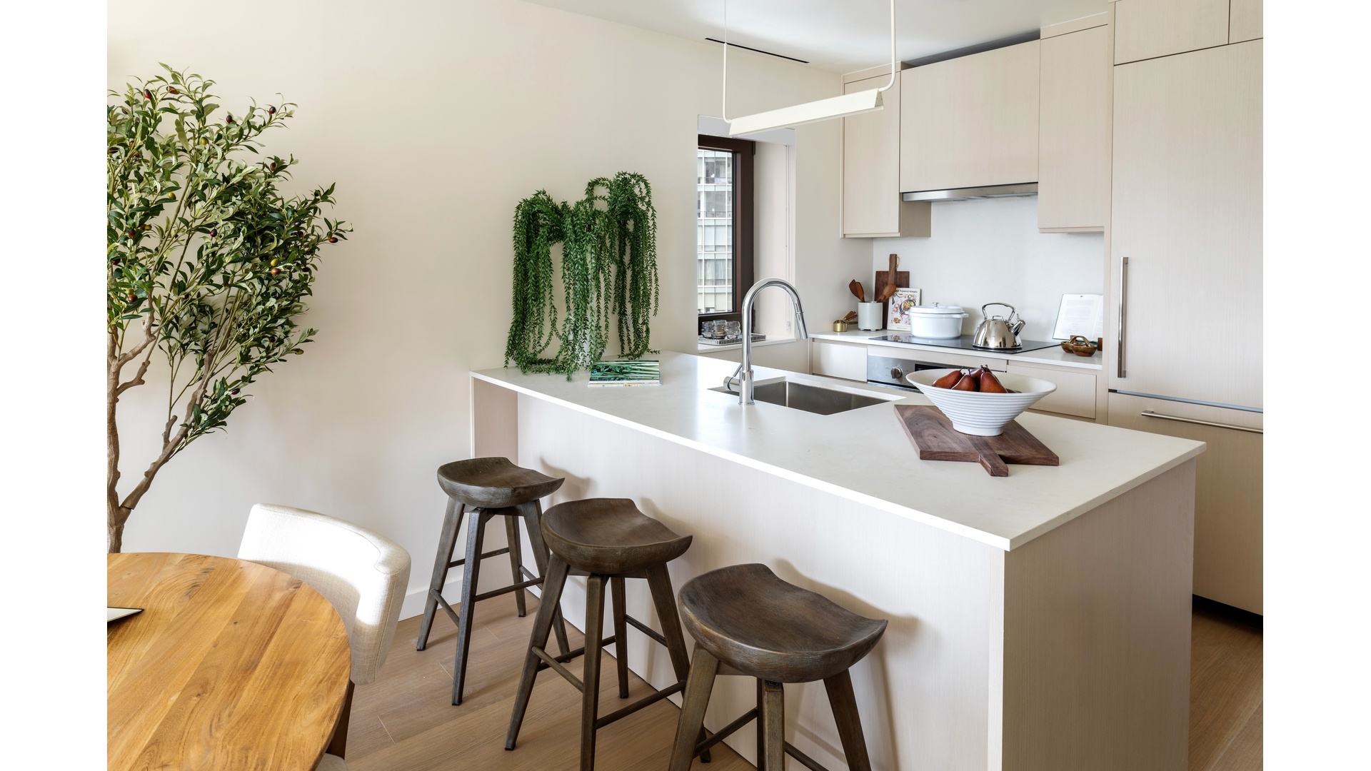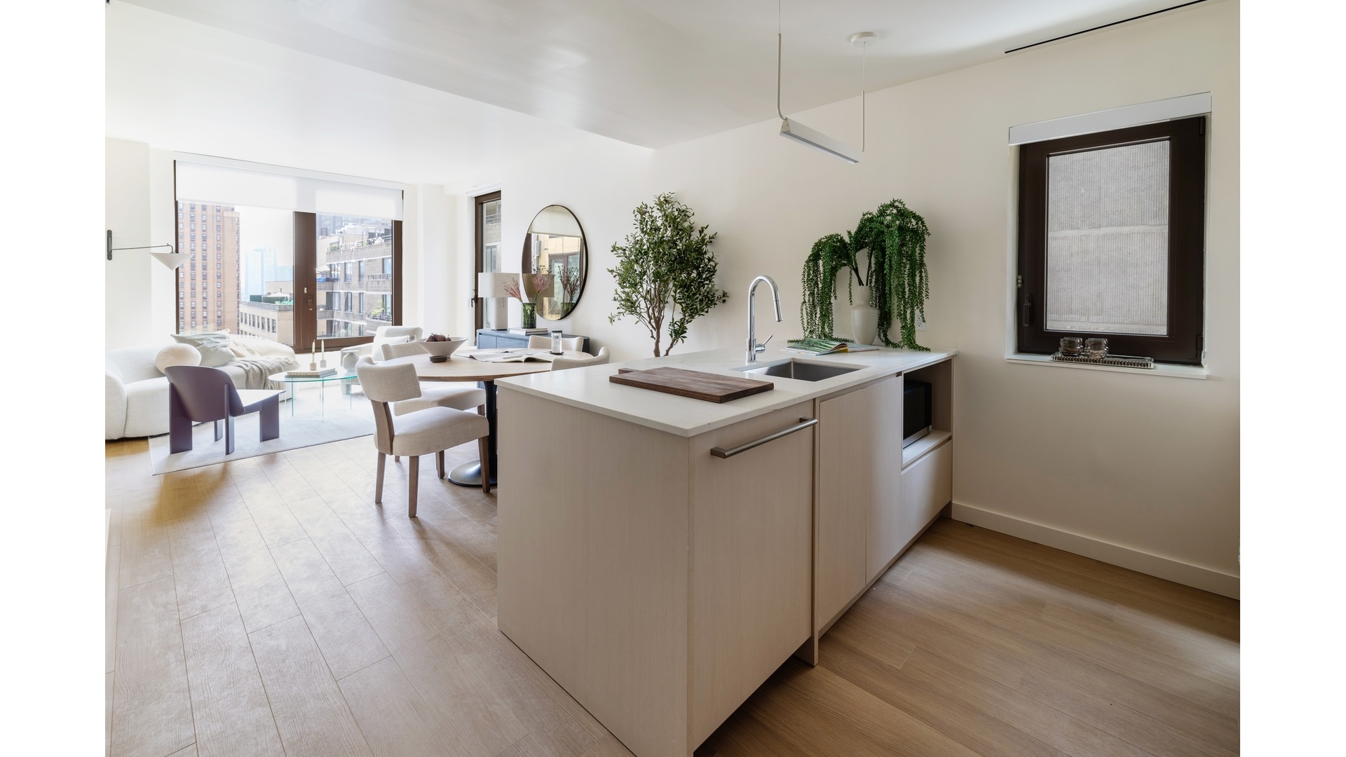 Inside, bright and airy studio to 3-bedroom residences feature oversized windows with iconic Manhattan views, elevated ceiling heights, White Oak-style flooring, in-unit Bosch washer & dryers, and smart home conveniences like programmable climate control and keyless entry.