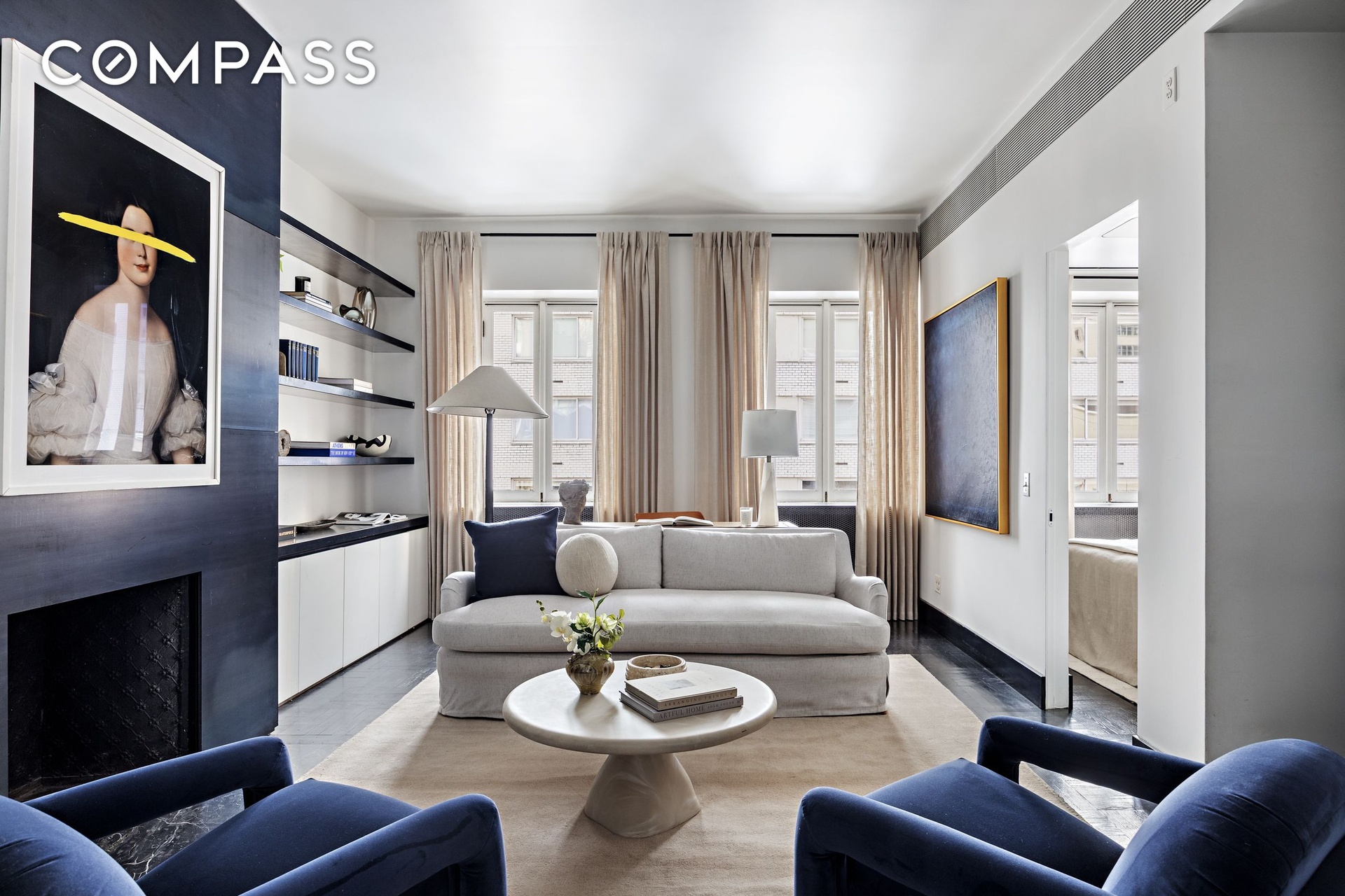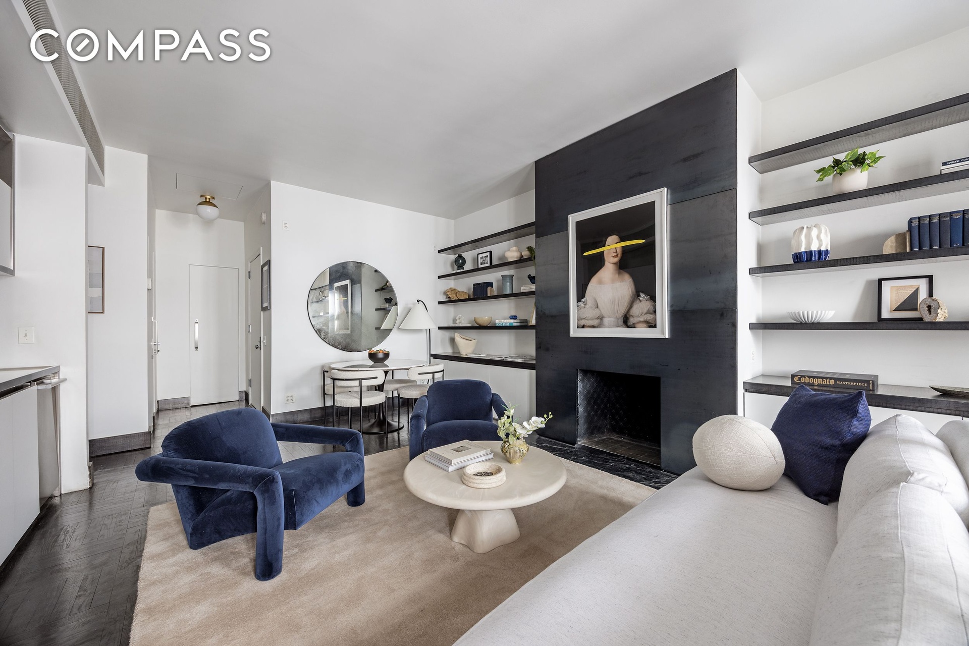 Adjacent to the primary residence, this home is complete with a secondary, one bedroom guest suite with a large living area, full bathroom and a sleek kitchenette. Thoughtful finishes include handsome black-stained floors and a beautiful, contemporary mantle, flanked by custom shelving. An existing pass-through connects the two sides of this home on the fifth floor where the dressing area of the guest suite meets the second bath.