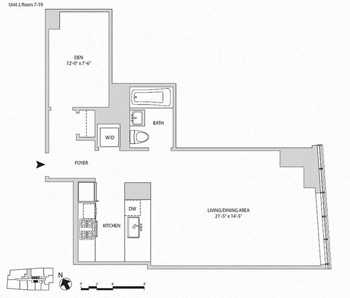 Luxurious & spacious studio apartment with a home office or sleeping alcove. Unit 15J has nearly 700 square feet of living space, with floor-to-ceiling windows and exquisite views of the Manhattan skyline and East River. The apartment features a chef's kitchen with full sized appliances, Italian marble countertops, lacquered cabinets, and a breakfast bar. The bathroom is hotel-like, with a tiled bath/shower, built-in shelving, under-cabinet lighting, and sleek finishes throughout. There is an in-unit Whirlpool washer & dryer stack as well as a closet. The separate home office or sleeping alcove is located away from the main living area and has a door for extra privacy.
