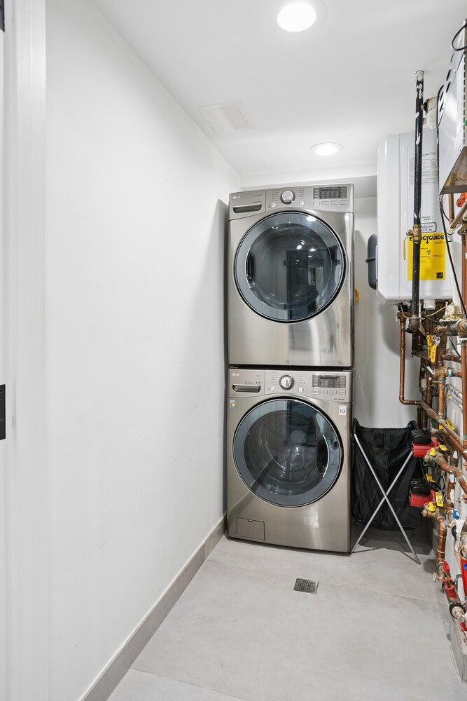 A full bathroom on the first floor includes a steel steam shower, and a dedicated laundry room offers LG washer and dryer along with a tankless water heater.