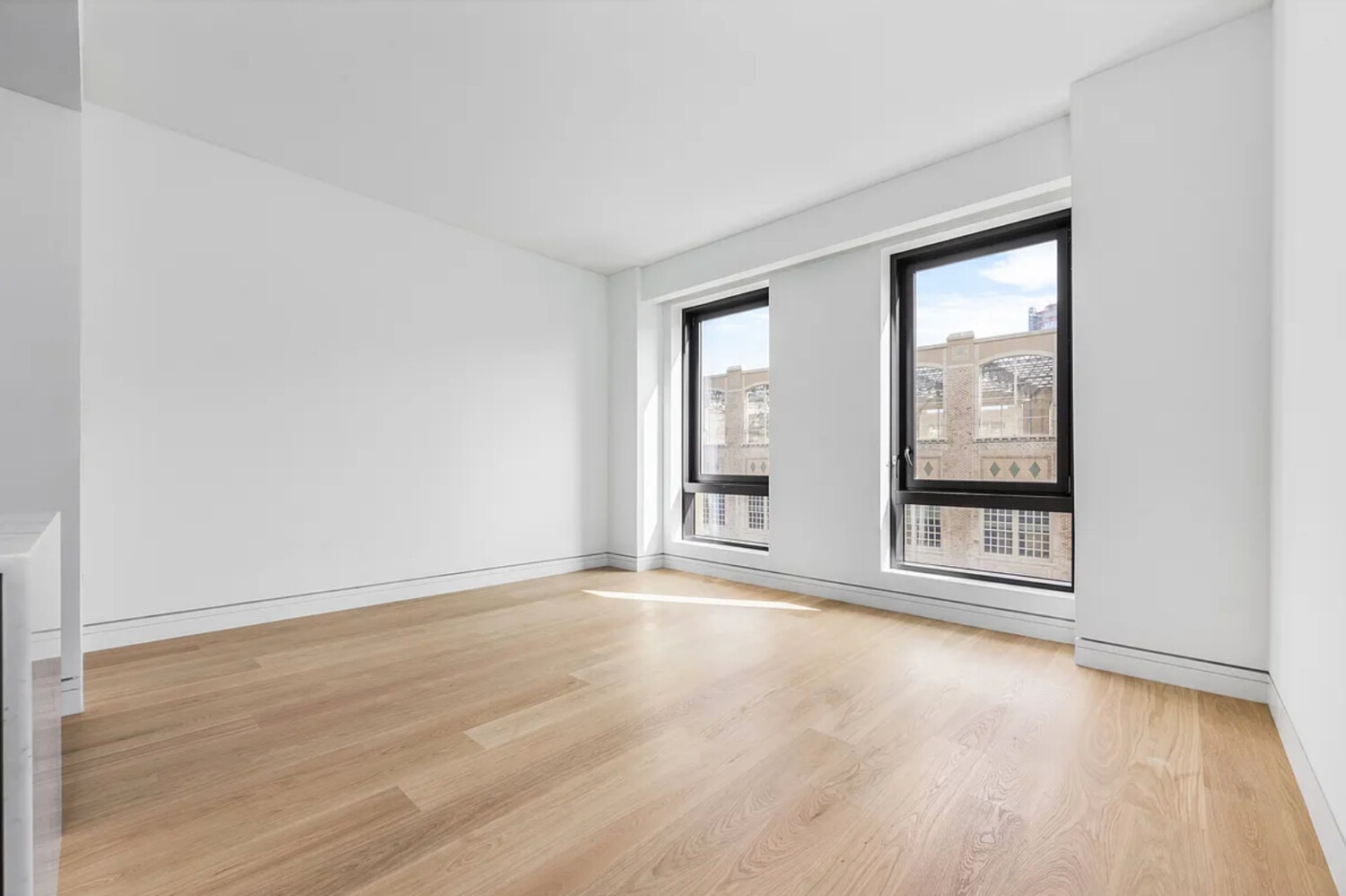 The sun-soaked master bedroom reveals a spacious walk-in closet, and a luxurious bathroom with radiant heated flooring sits across the hall. Alanur honed marble floors and wet walls, Imperial Danby countertops, a custom walnut vanity, and a shower with thermostat and volume regulators are complemented by Duravit polished chrome fixtures. The residence comes complete with a washer and dryer, and the option to purchase residential storage.