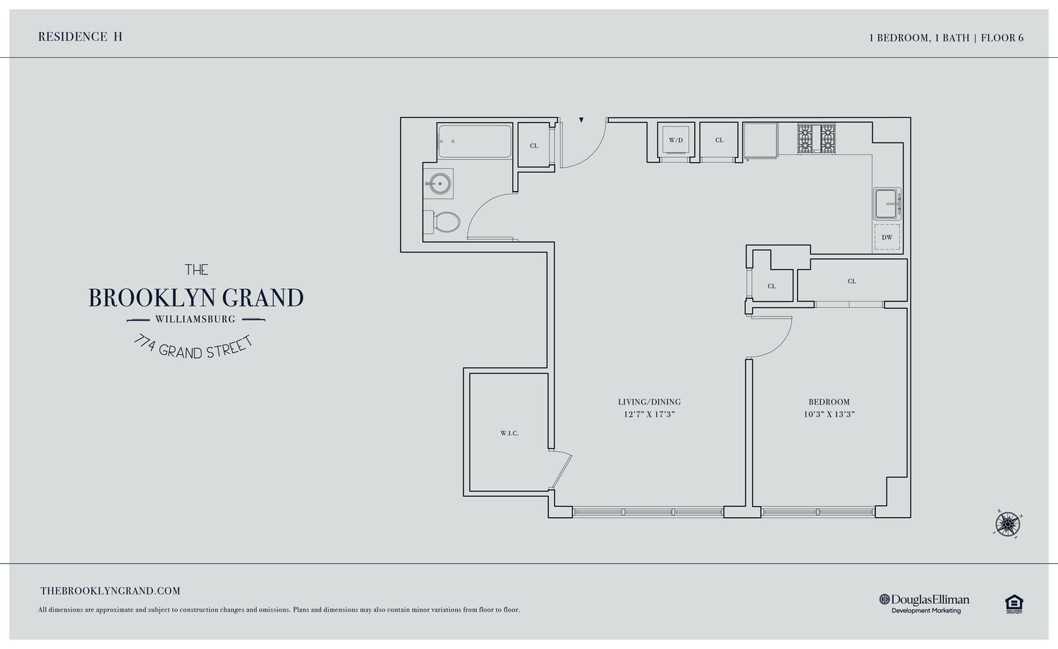 1 bedroom residence with industrial-chic oversized windows, open island kitchen, great closet space, and an in-unit Bosch, washer & dryer.