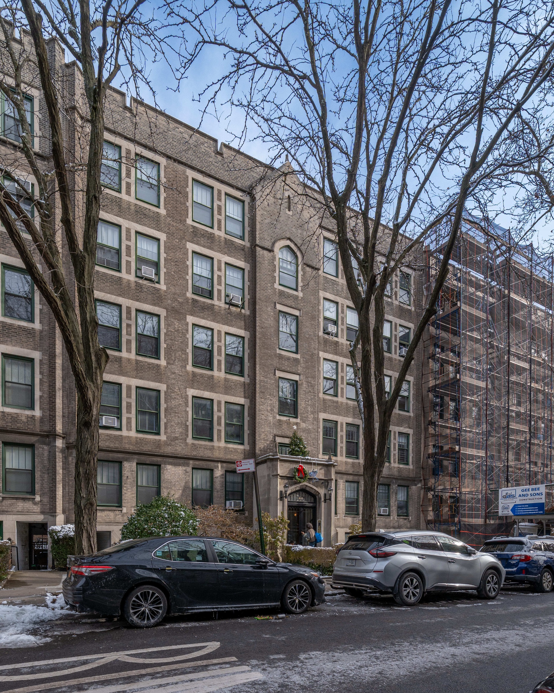 The 35-27 building enjoys a roof deck with planters and lounge furniture, a laundry room, and basement storage. The Greystones also share a block-long internal garden with trees and benches. Pets are allowed with board approval. This cherished neighborhood is home to Travers Park, the Jackson Heights Farmers Market, and numerous local restaurants such as Arepa Lady, Angel, and Table Wine. Multiple subway lines are nearby.