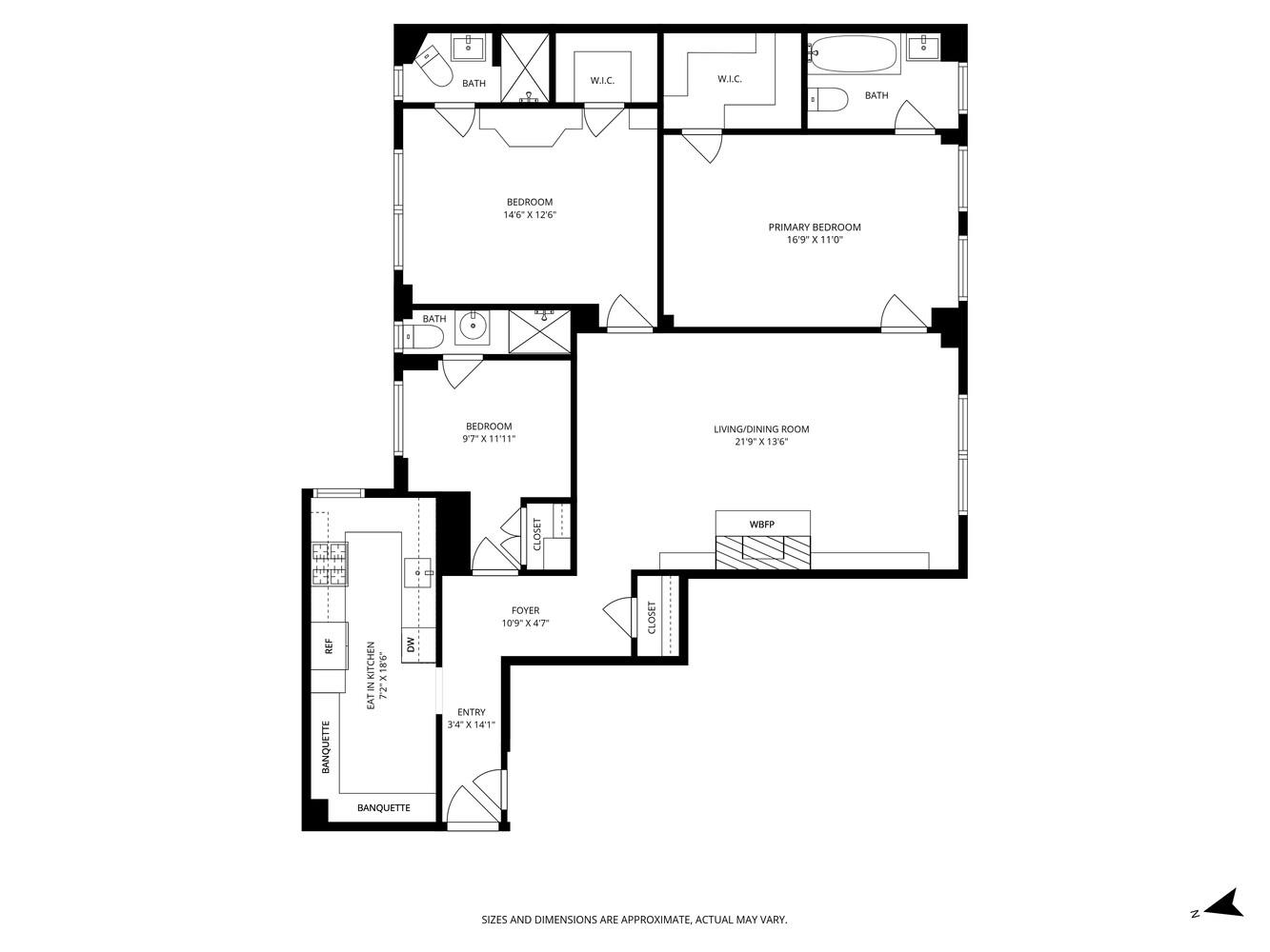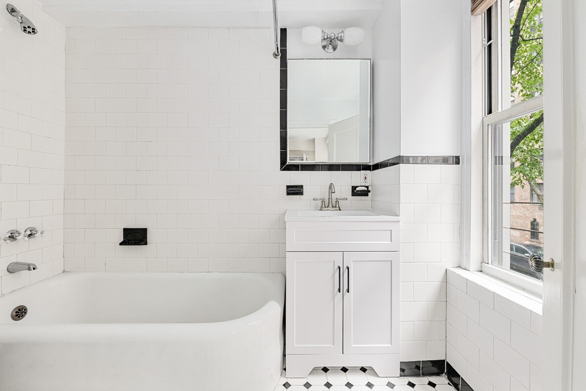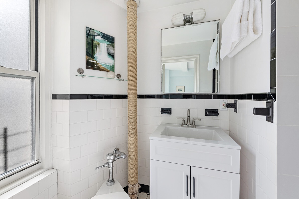 The generous primary bedroom easily accommodates a king bed, has an extra large walk-in closet, and boasts a renovated, windowed classic black and white ensuite bath with original cast iron soaking tub. The second bedroom is equally large with its own walk-in closet, well-crafted built-ins, and windowed ensuite bath with shower. The third bedroom also with ensuite bath is ideal as a child's bedroom or home office.
