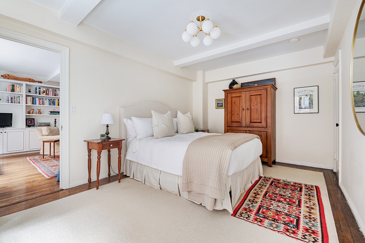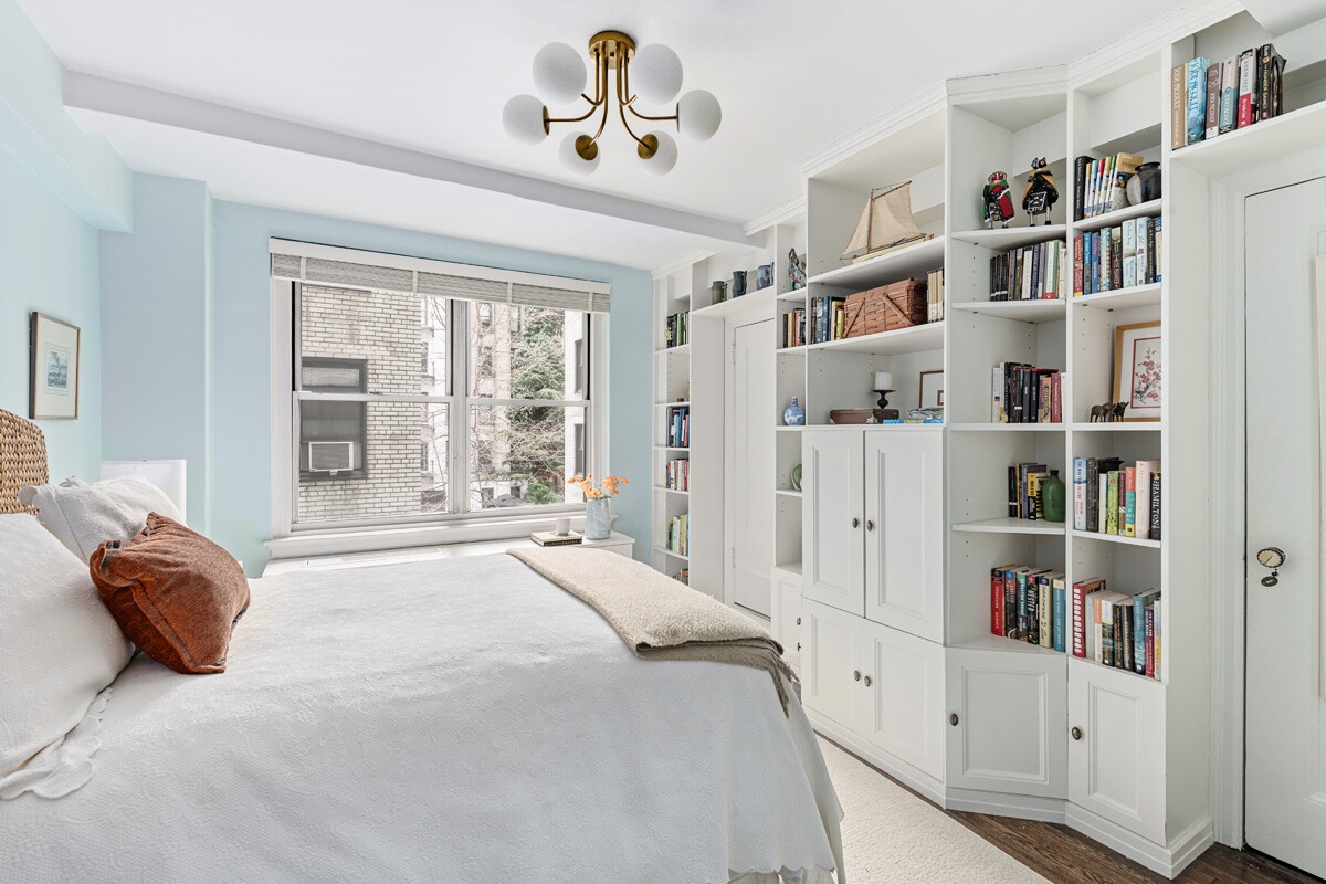 Enter to a gracious foyer which opens to both your modern kitchen and spacious living room. To your left, is the recently renovated windowed eat-in-kitchen featuring Fisher Paykel french door refrigerator, stove, and Bosch dishwasher. Enjoy family meals or your morning coffee at your smartly designed two bench banquette which includes storage beneath the seats. To the right, the expansive living room beckons with its wood burning fireplace, thoughtful built-ins, and picturesque views over tree-lined East 73rd Street. While you may choose to dine in the cozy eat-in kitchen, the living room is large enough to accommodate a rectangular table and chairs for holiday gatherings.