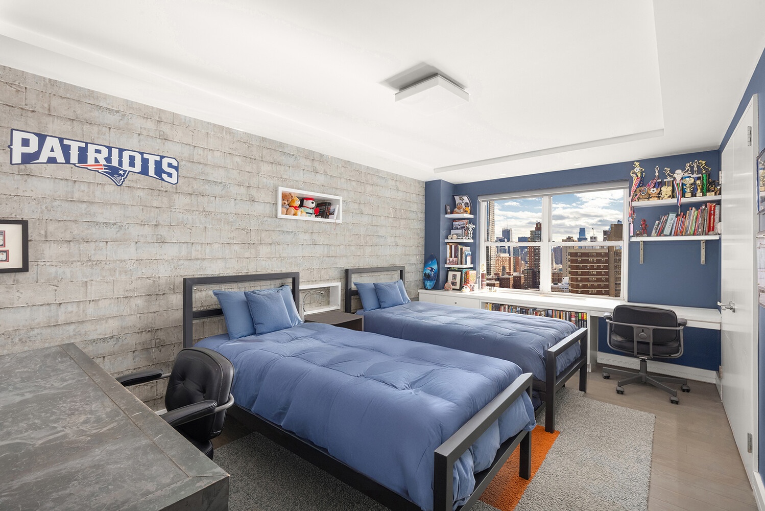 New to market and rarely available, this high floor three-bedroom, two bath home is flooded with light and offers open city views with partial river views.