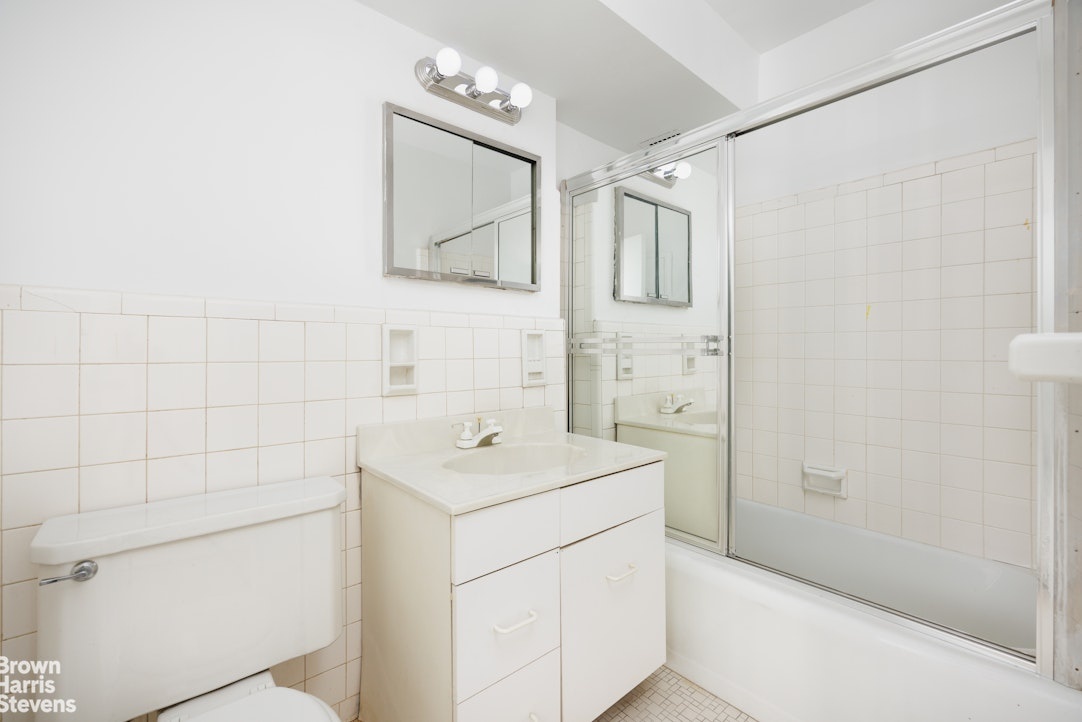 The two bathrooms, adjacent to the bedrooms, are finished in white tile with tubs, offering a neutral aesthetic that works well as-is or serves as a foundation for future updates.
