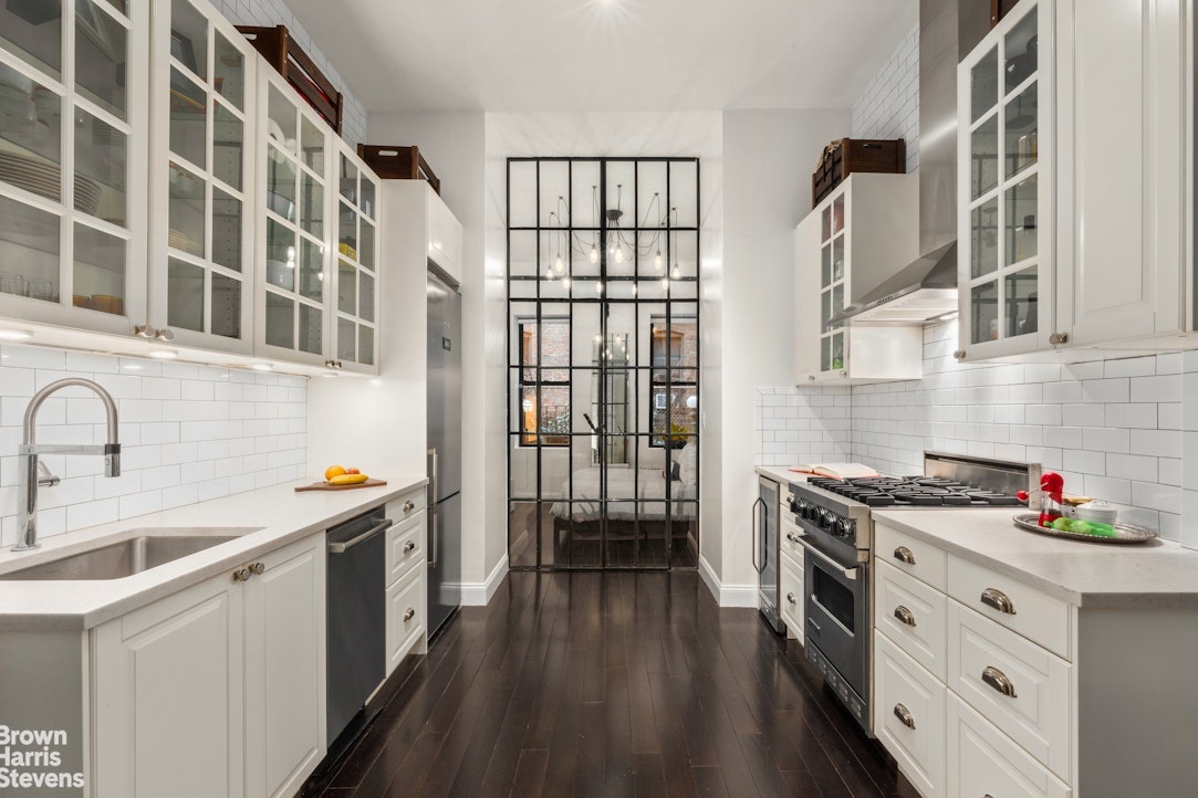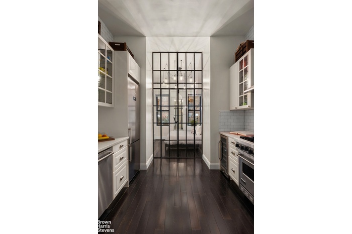 Hidden on a quiet, tree-lined stretch of East 1st Street, this thoughtfully redesigned one-bedroom offers a rare sense of calm right in the middle of the East Village. Apartment 1C blends pre-war character with modern edge, delivering a home that feels intentional, stylish, and effortlessly livable.The apartment features a proper one-bedroom layout, with oversized factory-style steel and glass doors separating the living area and bedroom while allowing light to flow throughout. High ceilings and original hardwood floors add warmth and scale, and the bedroom comfortably fits a queen-size bed with additional furniture.The kitchen has been fully upgraded with clean-lined custom cabinetry, quartz countertops, and a dishwasher, offering both function and a refined aesthetic. There is also a W/D in unit. Every improvement was carefully chosen to elevate the space without sacrificing comfort or character.54 East 1st is situated just moments from iconic restaurants, cafes, nightlife, and multiple subway lines. The building is well-run and allows a flexible sublet policy. Pets are allowed with board approval. Co-purchasing, guarantors, gifting, and pied-à-terres are considered on a case-by-case basis.