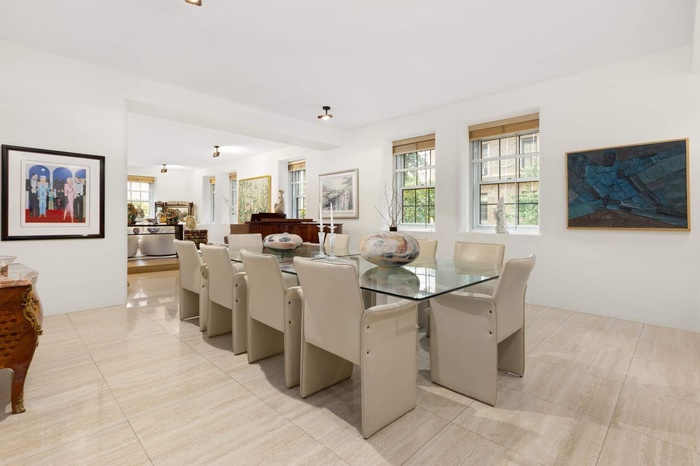 A private elevator opens to a welcoming gallery that leads into a bright, dual-exposure living room overlooking Park Avenue and complete with a wood-burning fireplace. Also off the gallery, a cozy library with a second wood-burning fireplace offers a quiet retreat within the home. A sizable formal dining room sits nearby, well suited for refined entertaining.