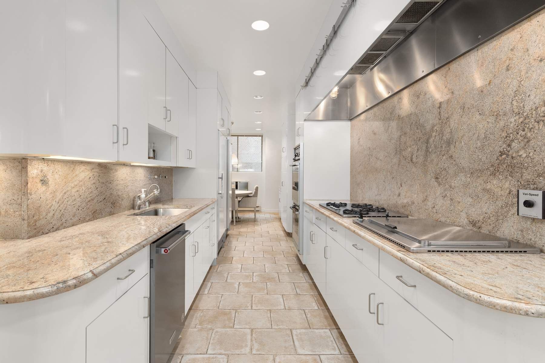 Enter through a private elevator to a welcoming gallery, which leads into a bright, spacious living room with dual exposures, complemented by a wood-burning fireplace. Nearby, a sizable formal dining room awaits, ideal for hosting refined gatherings.