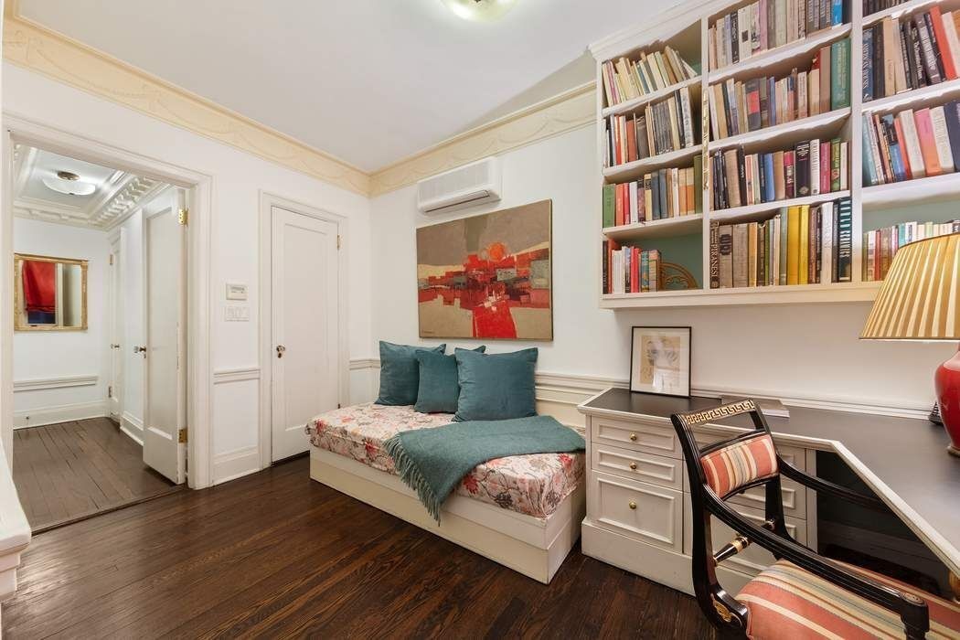 The Primary Bedroom is a refined sanctuary, offering privacy and comfort, and overlooks the stately living space. It boasts a thoughtfully designed dressing room and en suite bath. Two additional Secondary Bedrooms, both with en suite baths, provide versatility for guests, offices, or private sitting rooms, each maintaining the home’s classical integrity. To reside within the Joseph Pulitzer Mansion is to own a piece of New York history.