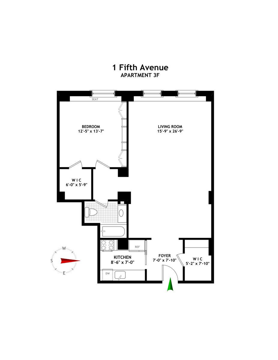 Located in the iconic 1 Fifth Avenue, this spacious one bedroom home is not to be missed. Upon entering, there is a gracious entrance foyer with a huge walk-in closet. The generously proportioned living room with bright western views has ample room to accommodate formal dining, along with a work area. A charming arched vestibule leads to the primary bedroom with an oversized walk-in closet, well designed built-in cabinetry and a window seat overlooking Fifth Avenue. Both the kitchen and bath were tastefully renovated and are in move-in condition. Prewar details include 9 foot beamed ceilings, hardwood floors, and oversized windows throughout.