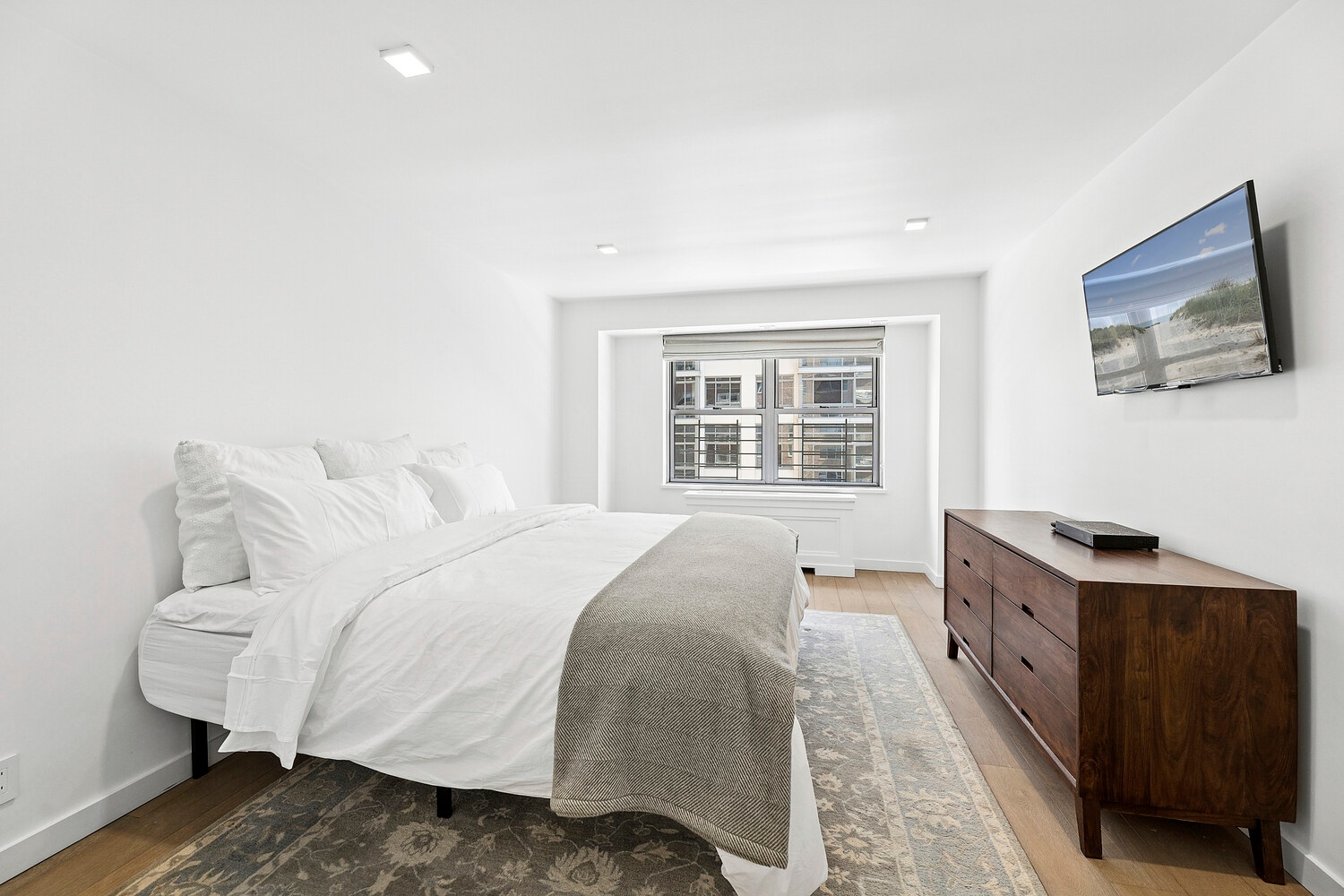 Throughout the residence are Hertog wide plank hardwood floors, upgraded interior doors with commercial grade hinges designed for enhanced sound insulation, Baldwin door hardware, and Lutron lighting controls. Windows are fitted with custom roller shades from The Shade Store, and additional Cityproof windows have been installed for enhanced sound reduction.