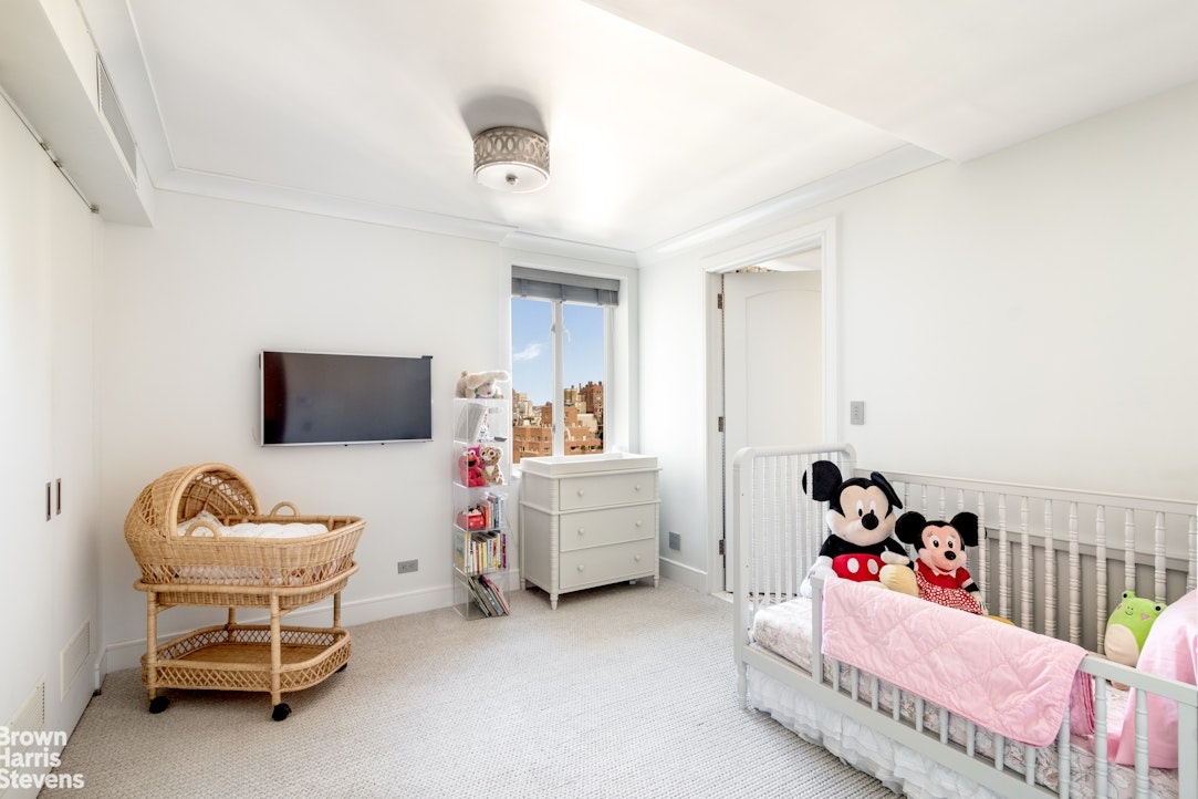 Immediately adjacent to the primary bedroom is another large bedroom with a marble en-suite bathroom that faces South and East with vistas of Billionaire's Row and Central Park foliage in the distance. There are custom built-ins throughout which make this bedroom an ideal guest suite and/or additional home office/den. At the opposite end of the hall, two more spacious bedrooms are served by a large Jack-and-Jill windowed bathroom with a bathtub and oversized vanity.