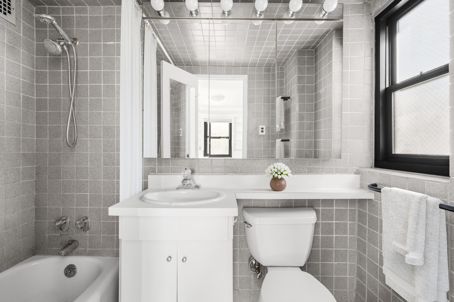 Welcome to this quintessential alcove studio at The Carlton East. As soon as you enter the apartment you will be impressed by the radiant natural light and South city view. The generously proportioned layout provides flexibility so you will be able to maximize every inch while maintaining an open, airy feel. The living room accommodates both a dining space and dedicated home office. The windowed sleeping alcove also has an open city view. The alcove features two sizable closets, fits a queen-sized bed and nightstands, and can easily be converted into a bedroom for privacy. The windowed bathroom adds another touch of brightness. The kitchen also has a window providing good light and an East view of 57th Street. Storage is plentiful. In addition to four sizable closets there is a built-in bookcase at the entranceway and shelving in the sleeping alcove.