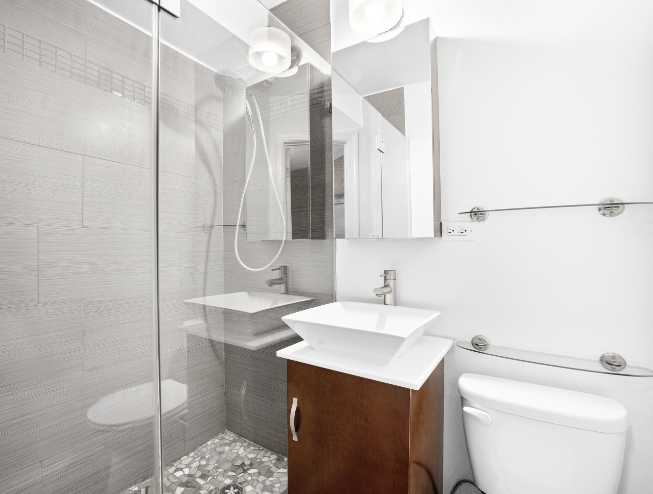 The thoughtfully designed layout maximizes space and style, with recessed lighting, abundant storage throughout, and a renovated bathroom with an updated shower. The building also offers the convenience of on-site laundry.