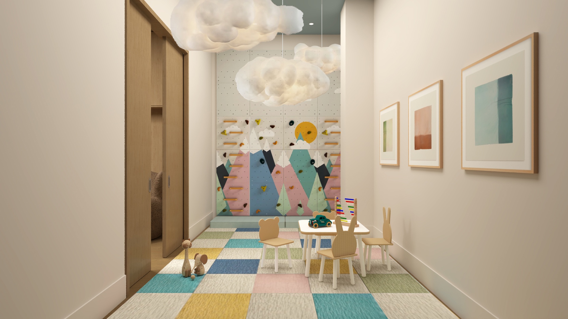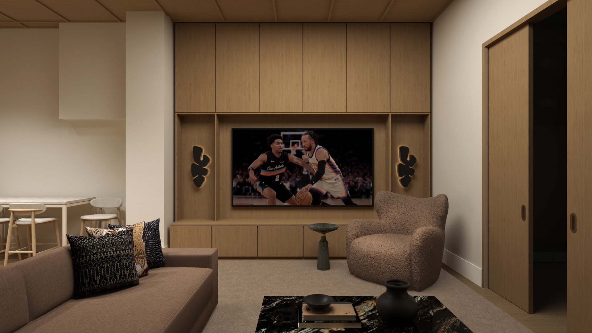 Resident lounge coming soon! Currently presented via virtual renderings; scheduled for completion July 2026.