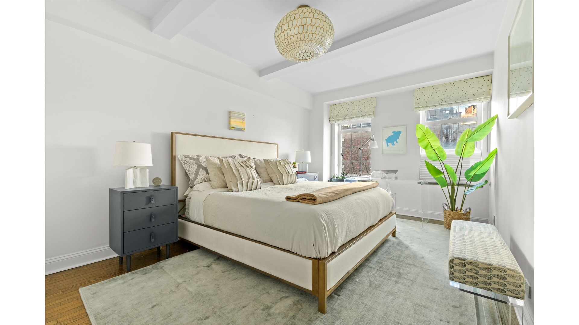 This fine residence boasts very generous proportions and the abundance of natural light help define this nearly 875 +/- sq. ft. home. There are several customized closets throughout providing excellent storage capabilities. The beamed ceilings, oak plank hardwood floors, steel door frames + grillwork, and honey-combed brick and plaster walls preserve the 1930's prewar character of yester years.