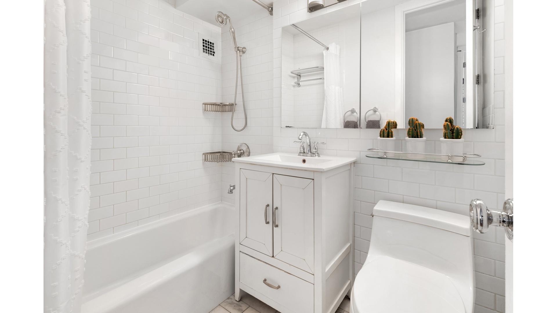 With great attention to detail, this sun-filled custom built and mint north/east corner converted three bedroom / one bathroom home resides at Lincoln Guild, a full service mid-century (built 1961) luxury cooperative located in the sought after Lincoln Square neighborhood. Offering wide open city views from all rooms, features of this exceptional home include an entrance foyer large enough for a home office, spacious east facing living/dining room with glass door to private balcony, & an open plan kitchen with Silestone counters with countertop seating, Liebherr and Whirlpool stainless appliances (5 burner gas range), glass subway patterned tiled backsplash, farmhouse sink & undercabinet lighting, The private bedroom wing includes a corner primary bedroom that easily fits a king bed, separate office area and a wall of custom mirrored closets, a large secondary bedroom with a custom double-sized closet, and a renovated hall bathroom featuring a marble floor, Kohler fixtures and floor-to ceiling ceramic tiling. Other features include new wide-plank flooring throughout, custom floor-to-ceiling doors, door frames, hardware and recessed lighting throughout, Friedrich thru-wall AC in all major rooms, large custom closets everywhere, and a VERY LOW $2,254 MT THAT INCLUDES UTILITIES! BLD: 24HR doorman/concierge, resident superintendent, on-site self-management office, renovated lobby with restored Sam Weiner mid-century mosaic mural, strong financial statement (no underlying mortgage), fitness center (no charge), community room w/catering kitchen, 2 laundry rooms, renovated hallways, bike room & on-site parking (both waitlisted), beautifully landscaped circular driveway, cats allowed but sorry no dogs. Best LS location, near Riverside Park, Hudson Greenway, Columbus circle, Lincoln Center, Whole Foods, Trader Joes, Wegmans (coming soon!), Jubilee Gourmet Market ,Fairway & Citarella, numerous restaurants, shopping, Citibikes, bus lines, and near the 1/2/3 subways!