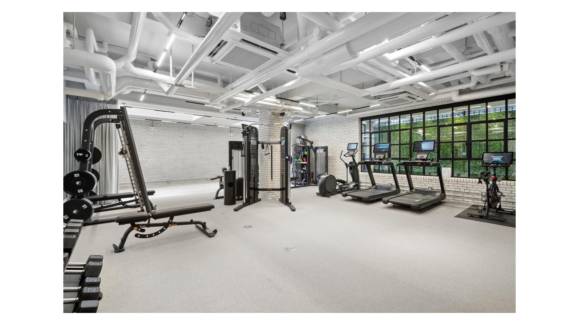 Upstairs, the private bedroom level provides ideal separation of space, featuring a generous primary suite with a walk-in closet and ensuite bath, two additional bedrooms, and a second full bath. All bathrooms are windowed. The building elevator provides access to both floors of the residence.