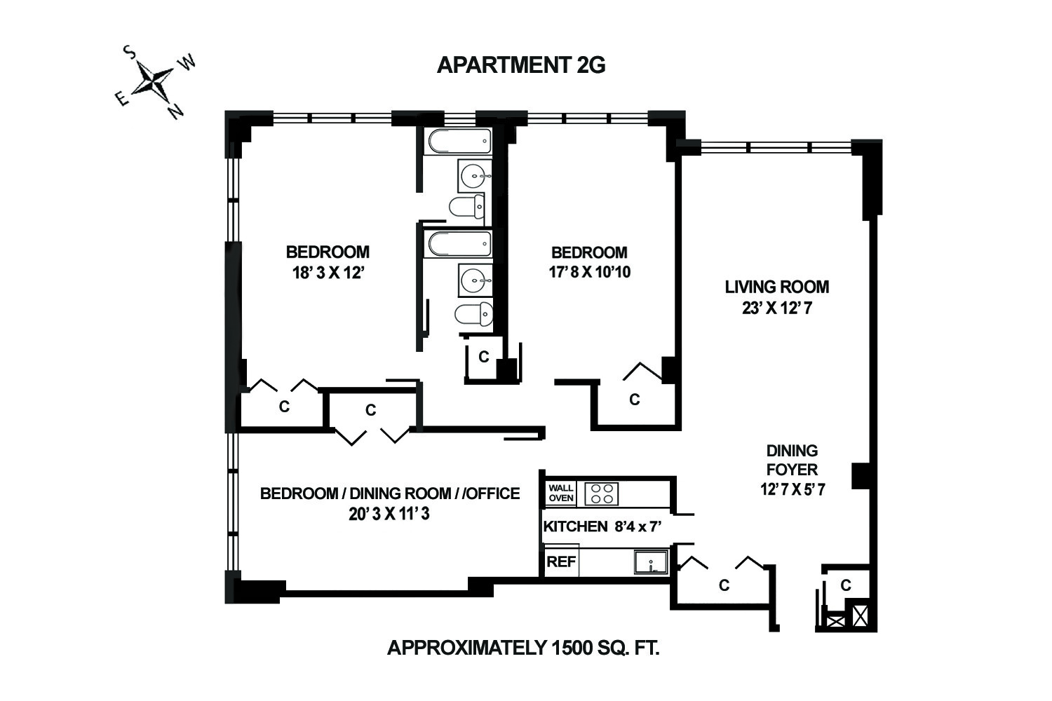 Attention Buyers: NO BOARD APPROVAL for this large, south-facing, corner 5 room residence, easily convertible to a three-bedroom. At approximately 1,500 sq. ft., the third bedroom / dining room / office space is extraordinarily long at 20 ft. All 3 bedrooms are split from each other, providing peace and solitude. Essentially in all-original condition, bring your contractor and architect to make this exactly your own. Maintenance is a remarkable $2/sq. ft. A monthly capital contribution of $113.05 began January 1st.