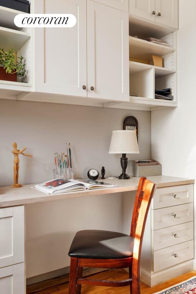 The building delivers the full pre-war peace-of-mind package: pet-friendly policies, a renovated elevator, and a live-in superintendent who keeps everything running smoothly. And then there are the extras that truly elevate daily life; a rare, oversized courtyard that feels like a private oasis, convenient on-site laundry, bike storage, and private storage.