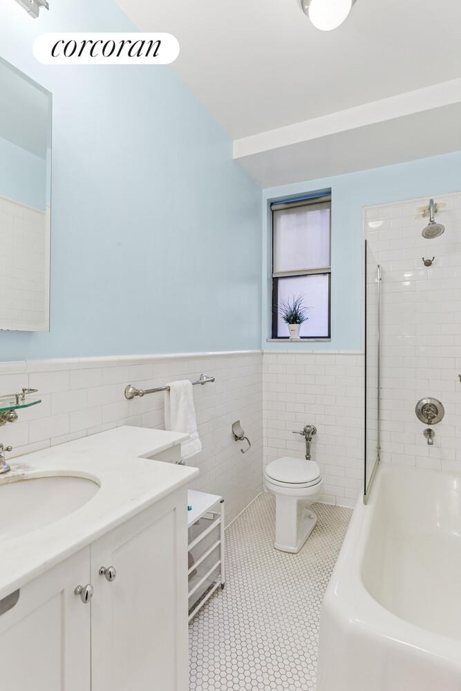 Enter the foyer to the gracious Living Room with a large double closet and a large Dining Area just off the Kitchen. The windowed galley Kitchen was updated with white cabinetry and stainless appliances: a Samsung refrigerator, GE Profile oven, microwave and dishwasher. The Primary Bedroom faces north onto 36th Street and has a windowed Bath en-suite. The second Bedroom faces East. There is another full bath also windowed.