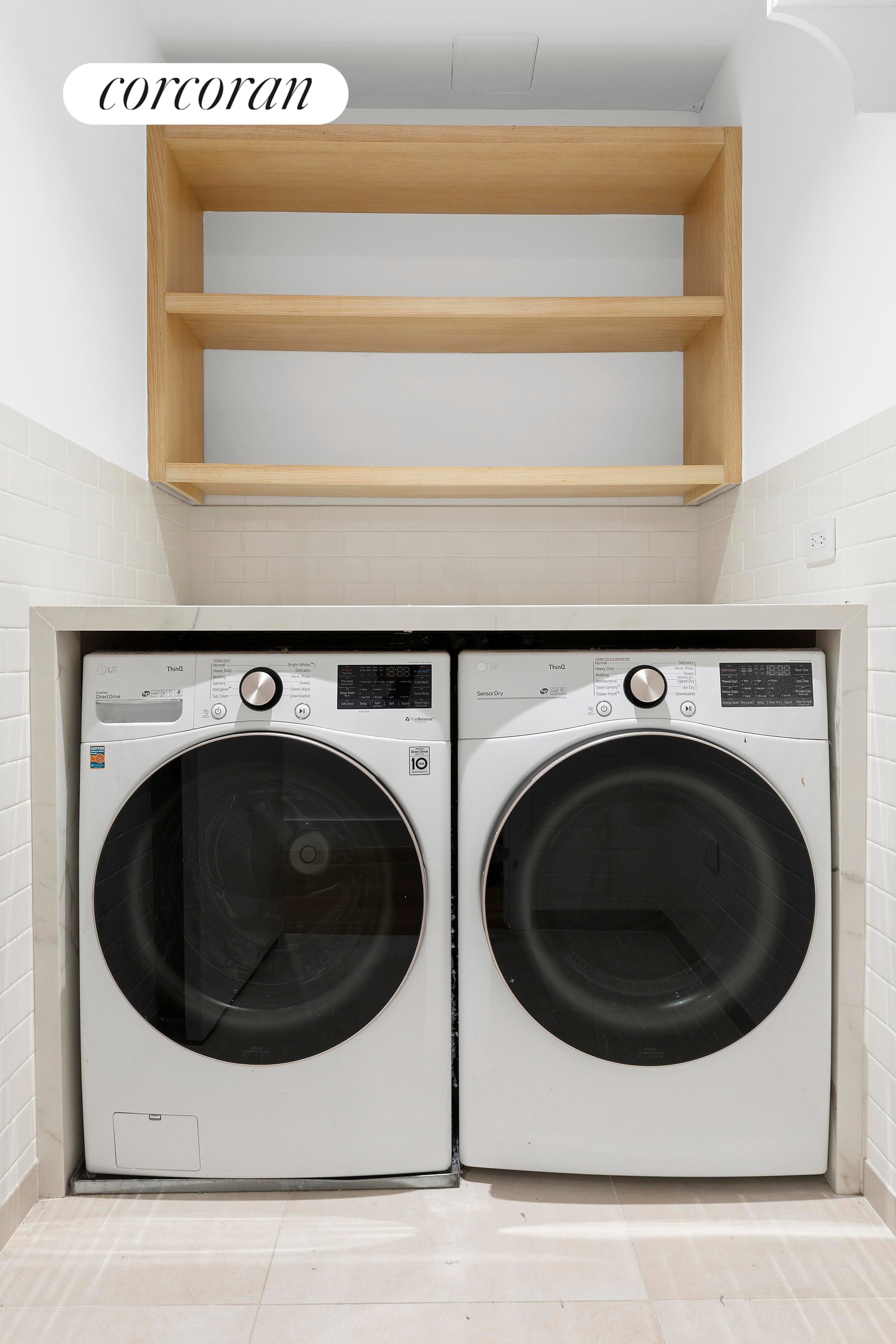 Additional conveniences include a laundry room with side-by-side washer and dryer, custom cabinetry, a separate refuse room, and a dedicated storage unit in the building's lower level.