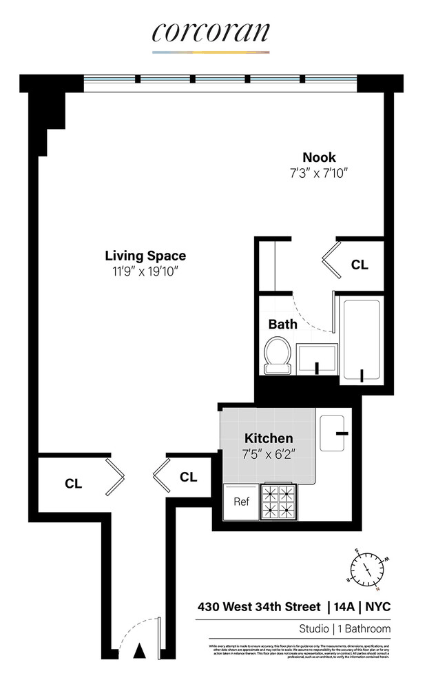 UNLIMITED AND IMMEDIATE SUBLETTING ALLOWED FROM DAY ONE. Welcome to this beautifully RENOVATED 14th-floor alcove studio at 430 West 34th Street - offering the rare opportunity to be the very FIRST to live in this newly updated home.