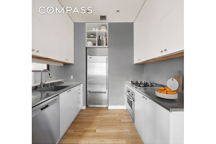 The kitchen is a smart design and fully equipped with stainless steel countertops, a Bosch dishwasher, a SubZero refrigerator, and a Thermador oven and stove. Other features of the apartment are newly refinished harwood floors, winged bedrooms, a windowed home office, W/D in unit and a spa like bathroom with a glass enclosed deep soaking tub/ shower.