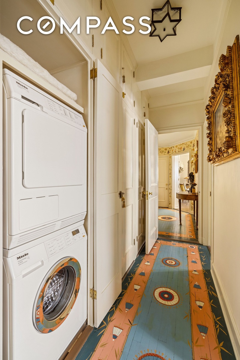 Thermostatically controlled through-wall heat and a/c, and an in-unit washer and dryer complete this space.