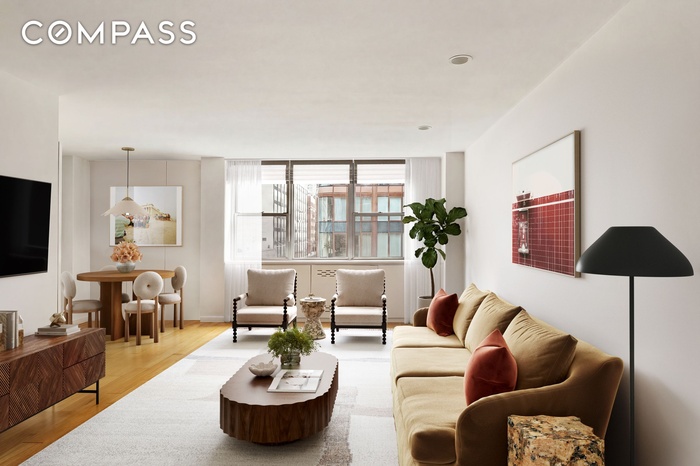 This oversized, sun-flooded corner one-bedroom offers exceptional scale, light, and flexibility. A generous alcove—ideal for formal dining—can seamlessly convert to a refined home office or guest suite. The king-sized bedroom is grand in proportion, bathed in natural light and features a spacious closet with room to spare.