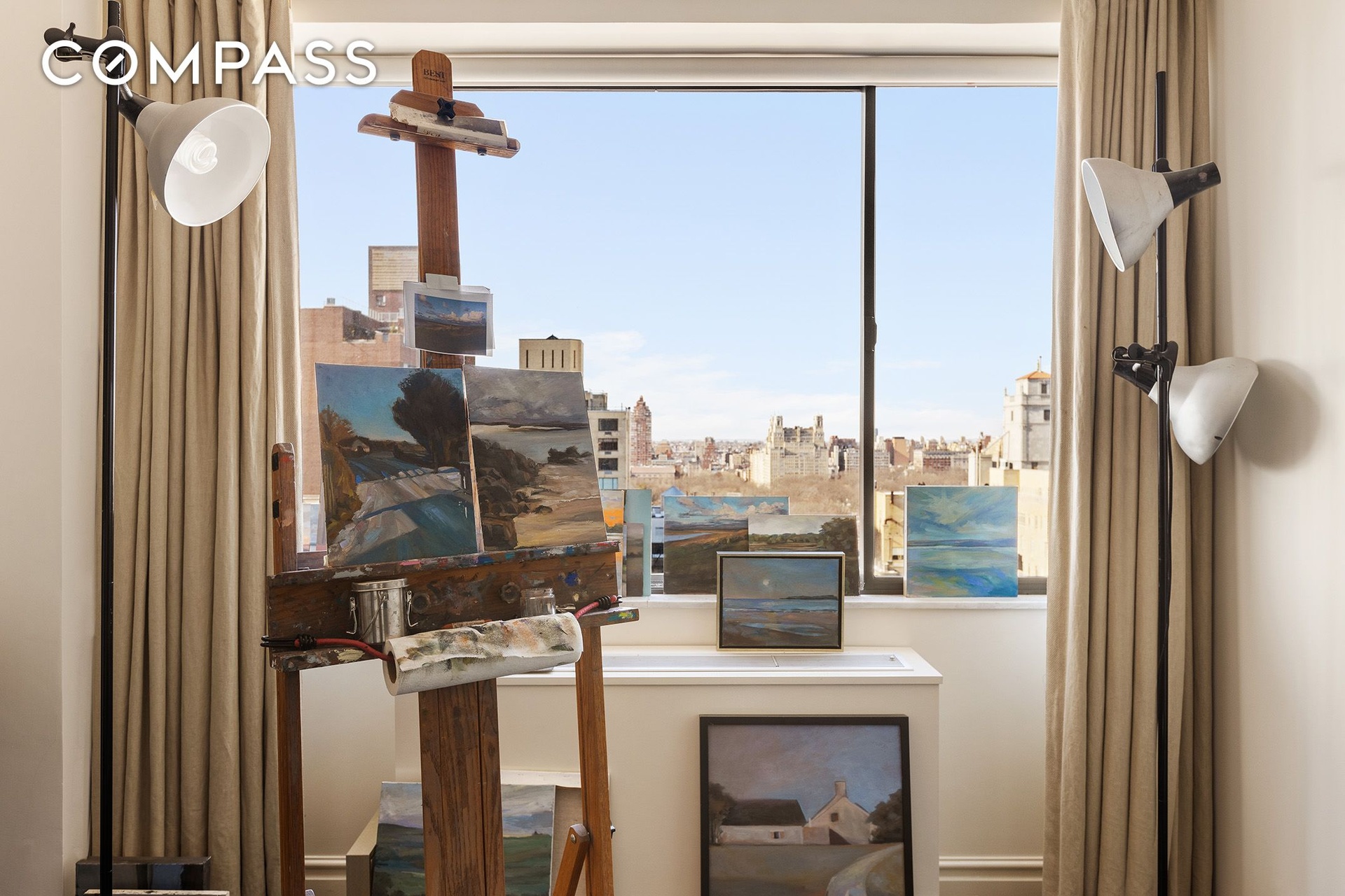 The residence features three generously scaled bedrooms, each accompanied by a full bath. The exceptional primary suite enjoys dramatic corner exposures, capturing western vistas across Central Park and northern views along Madison Avenue. A wall of custom closets leads to a serene, spa-inspired en-suite bath. The well-proportioned second bedroom offers a walk-in closet and private en-suite bathroom, while the third bedroom, currently configured as the owner’s art studio, boasts enchanting park views and exceptional natural light.