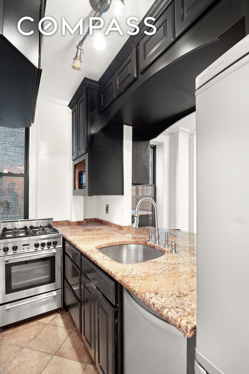 Experience timeless elegance in this beautifully renovated one-bedroom apartment, where soaring 9-foot ceilings, intricate crown moldings, and rich Brazilian teak hardwood floors create a refined and inviting atmosphere. The open, windowed kitchen is a showpiece, featuring sleek black cabinetry with under-cabinet lighting, granite countertops, stainless steel appliances, and a breakfast bar overlooking the living room. Ample storage includes a generous living room closet and a spacious pantry, while the windowed bathroom impresses with natural stone walls and a modern glass shower. With low monthly maintenance charges, this exceptional home combines luxury living with smart value in an enviable location in the heart of the Upper West Side.