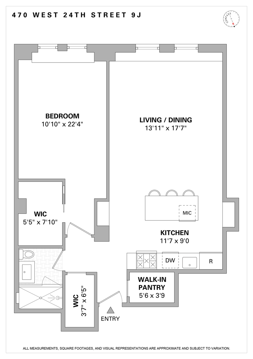 Located on the ninth floor of London Terrace, Apartment 9J at 470 W 24th St is a thoughtfully renovated one-bedroom with three oversized walk-in closets - providing an extraordinary amount of storage space. Every room and closet has been renovated to the highest level of quality, while still respecting the unique pre-war features of London Terrace, including two elegant niches in the living room that can be used for display, storage, and a full bar.