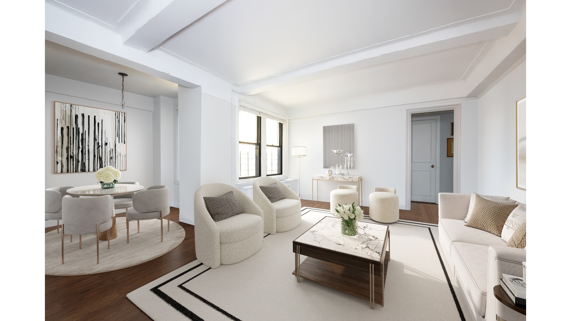 IMMACULATE SKIM COATED WALLS AND BEAUTIFUL FLOORS. With an ideal layout and high ceilings, enter through a spacious foyer leading to a well proportioned and wide south facing living room with an adjoining dining area; creating a wonderful flow throughout the common space. Windowed eat-in-kitchen and bathroom. The private primary bedroom, easily accommodates a king side bed, and additional lounging. Hardwood floors, abundant closet space including a linen closet, ability to put in thru wall a/c and decorative fireplace. WINDOWED EAT IN KITCHEN AND WINDOWED BATHROOM NEED TLC. VIRTUALLY STAGED.