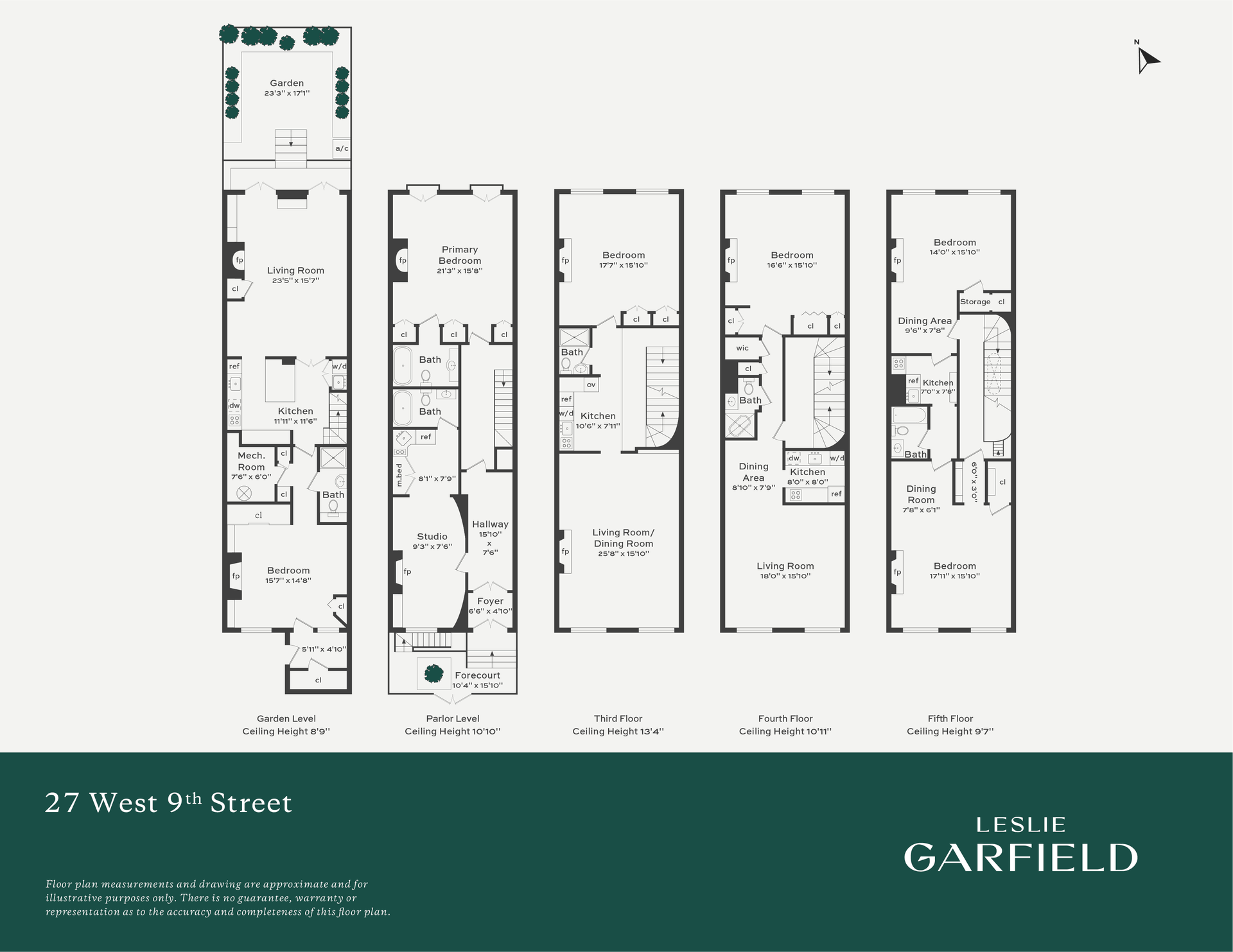 Currently configured as a one-and-a-half-story owner's duplex across the garden and parlor floors, a studio apartment on the parlor level, and three additional floor-through residences above, the five-story property offers exceptional flexibility. Additional features include a beautifully landscaped garden, dual entrances, and updated mechanical systems.