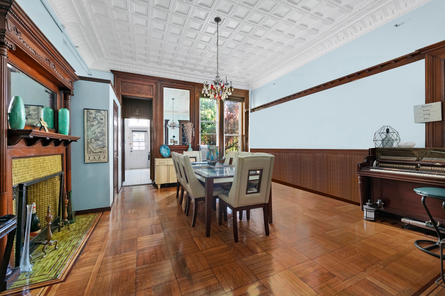 Every corner of this majestic townhouse whispers stories of its rich history, while comforting you with tastefully modern updates. The townhouse effortlessly radiates its 19th-century charm through its striking Italian Renaissance wood-carved stairways, original doors, and ornate moldings, offering a one-of-a-kind environment filled with character and allure. Begin mornings on the rear parlor floor deck with a cup of coffee, or unwind after a long day in the serene private patio below.