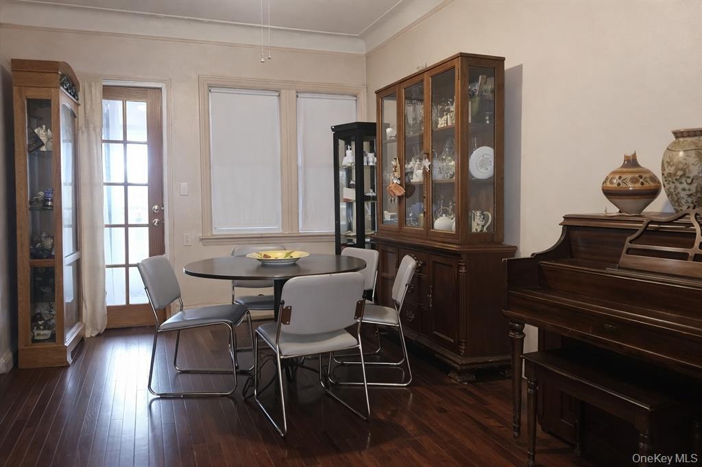 Brick-attached single-family home with rear garage and driveway parking situated on a quiet residential block in East Elmhurst. The main level features a comfortable layout with a living room, dining area, and kitchen. The dining room provides access to a porch, offering a pleasant outdoor space to enjoy during the warmer months. The second floor includes three well-sized bedrooms and a full bathroom with both a bathtub and separate shower. The walk-out basement provides versatile additional space, a bathroom, and convenient direct access to the backyard. Additional highlights include hardwood and tile flooring, an updated electric panel, and a boiler that was replaced approximately two years ago. Offering comfort, functionality, and versatility in a well-established Queens neighborhood. Conveniently located near public transportation, shopping, schools, a neighborhood playground across the street, and with easy access to major highways for convenient commuting. A great opportunity to own in the East Elmhurst neighborhood.