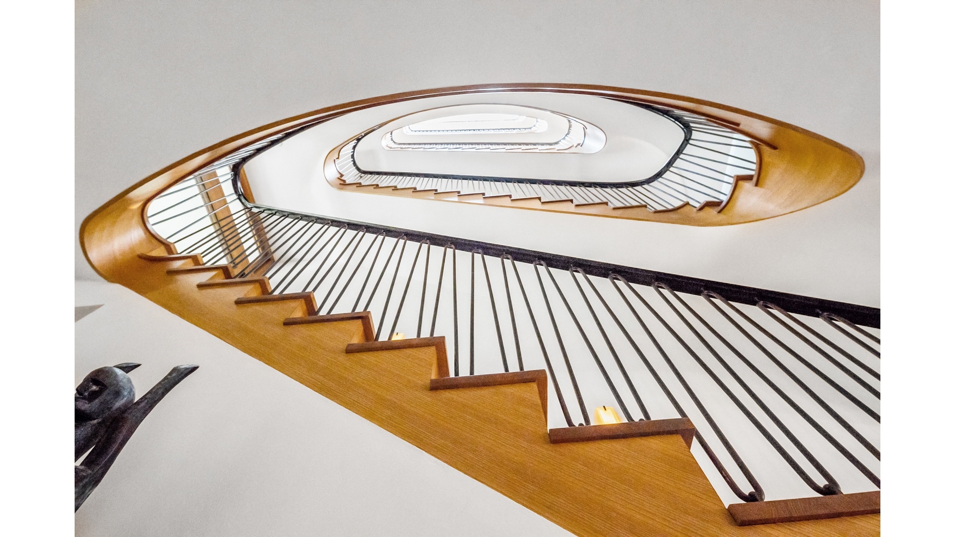 The centerpiece of the finished interior is a staircase with a railing modeled on French design of the 30's that is open from the 1st floor to the roof skylight. The staircase creates a sweeping sense of openness that carries through the 2nd floor living and dining rooms to the 3rd floor study and den, an inviting space for small dinners, family occasions or expansive entertaining. In that regard, the owners have hosted events for as many as 300 people. The third floor can also be used as one or two large bedrooms if desired.