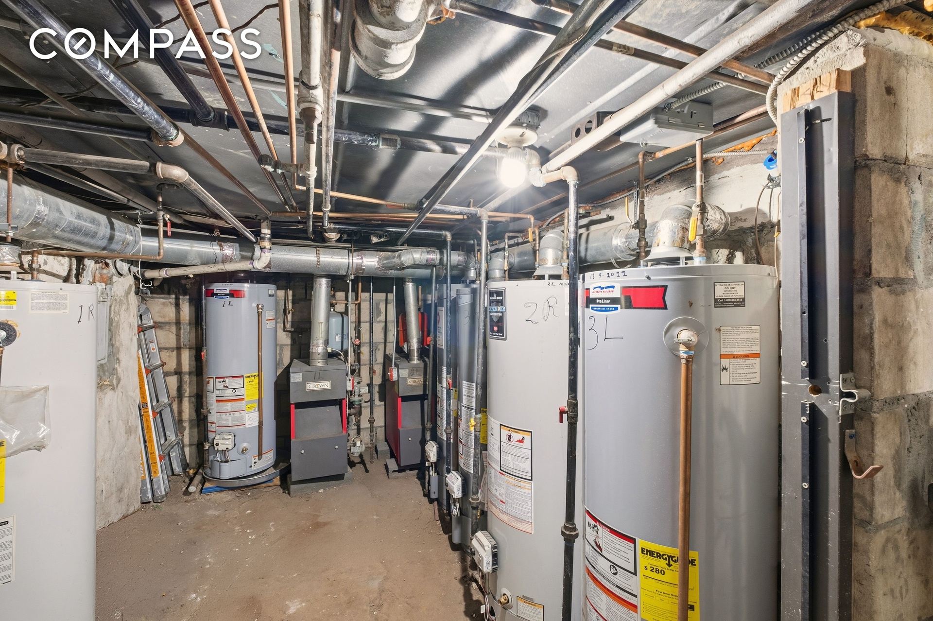 Basement contains all mechanicals, including new boilers and clean system setups.