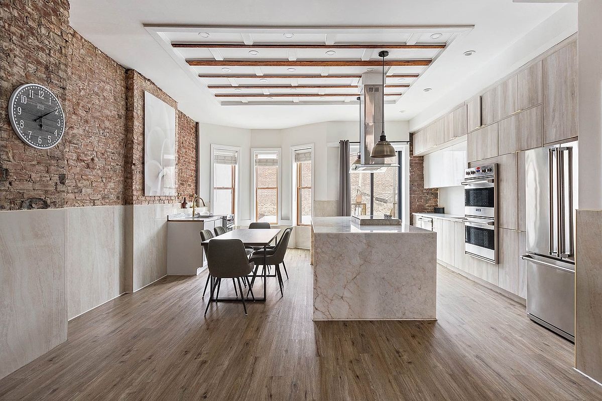 This fully renovated three-family townhouse in Crown Heights offers nearly 3,000 square feet of modern living combined with strong income potential. The owners’ duplex spans two levels with 4 bedrooms and 2.5 baths, featuring a bright, open kitchen with a dedicated prep station for strict dietary or cooking needs—perfect for entertaining and everyday life.