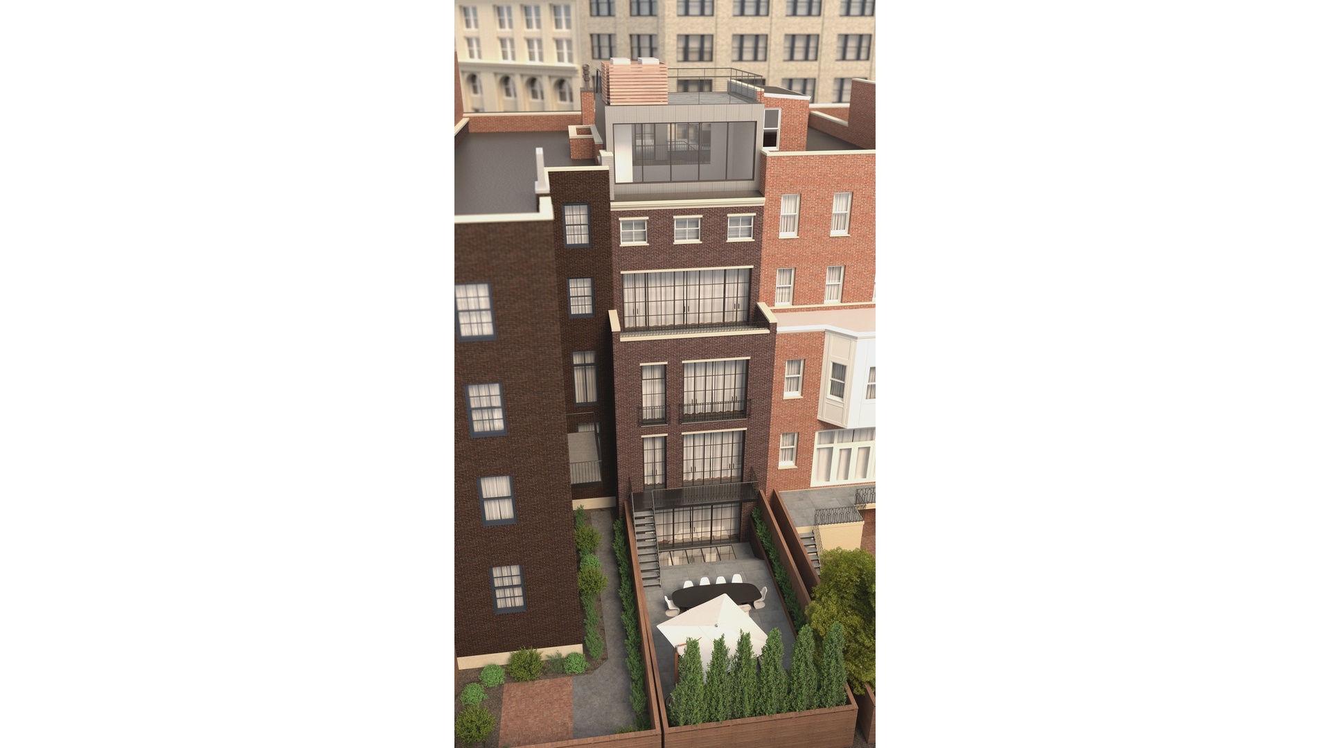 The approved plans envision a dramatic seven-story mansion featuring a rooftop extension, a fully excavated cellar with a home gym and theater, a spectacular roof deck, and four additional distinct outdoor spaces, transforming the property into a one-of-a-kind Greenwich Village mansion.