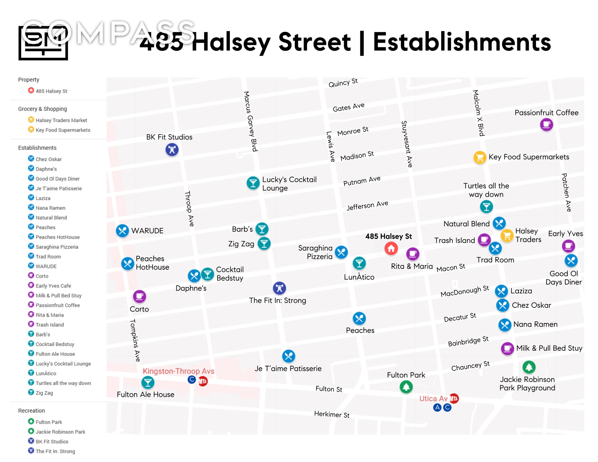 Set on a picturesque, tree-lined block in Stuyvesant Heights, 485 Halsey is moments from beloved neighborhood destinations, including Saraghina, Peaches, Trad Room, and Laziza, along with multiple nearby parks offering green space and recreation. Transportation is effortless with the Utica Avenue A/C Station just moments away, and convenient access to JFK Airport.