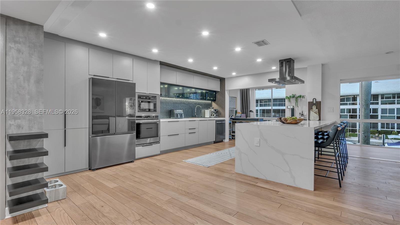 Experience luxury living in this beautifully remodeled 2-bedroom, 2-bathroom condo with breathtaking water views! Every detail has been thoughtfully designed, featuring a chef’s kitchen with an expansive island, quartz countertops, and top-of-the-line appliances—perfect for entertaining. The open-concept layout is flooded with natural light through large windows, creating a bright and airy ambiance. Both bathrooms have been exquisitely remodeled with high-end finishes. Enjoy peace of mind with a new roof assessment already paid by the seller. Boat lovers rejoice! A dock is available for rent, accommodating boats up to 45 feet. Located just minutes from restaurants, bars, shopping, and within walking distance to the beach.
